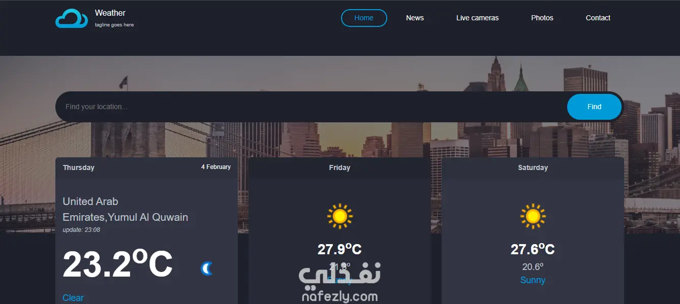 "This is a fully interactive weather website built using JavaScript that provides real-time weather updates tailored to your current location. The website fetches accurate data including temperature, humidity, wind speed, and overall weather conditions, allowing users to plan their day effectively. With a responsive design, intuitive interface, and dynamic visuals, users can easily navigate through different cities, see hourly and daily forecasts, and enjoy a smooth and engaging experience. The project demonstrates the use of modern JavaScript features, APIs for fetching live weather data, and responsive web design techniques to create a practical and user-friendly application."