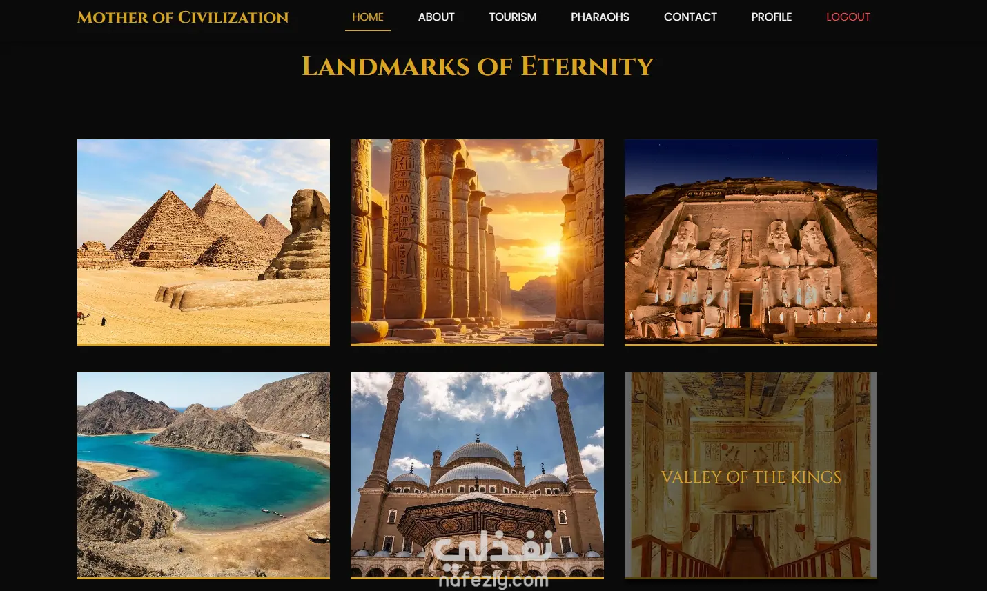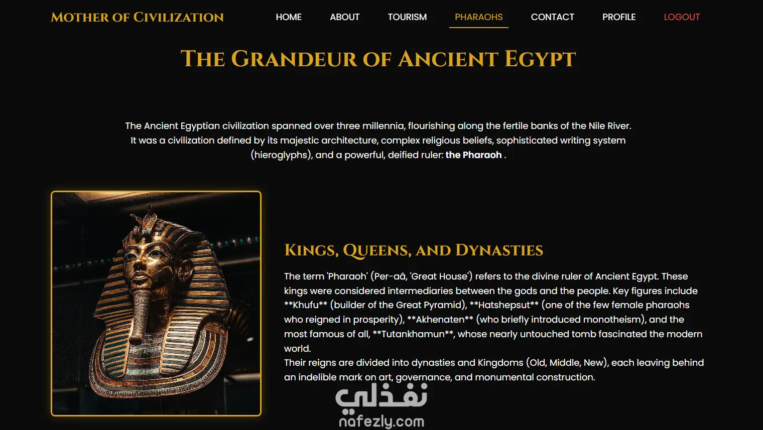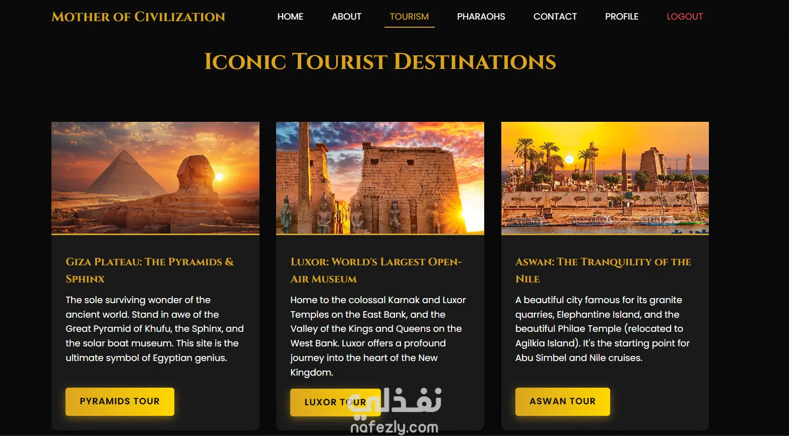 (Home – About – Tourism – Pharaohs – Contact – Profile)
