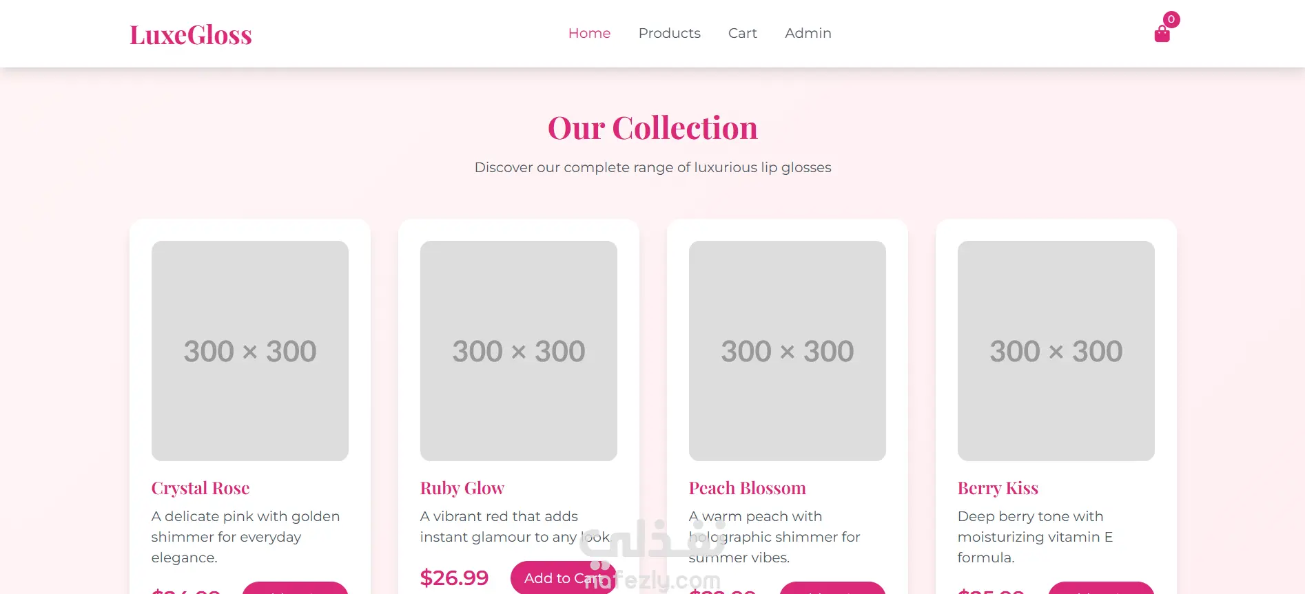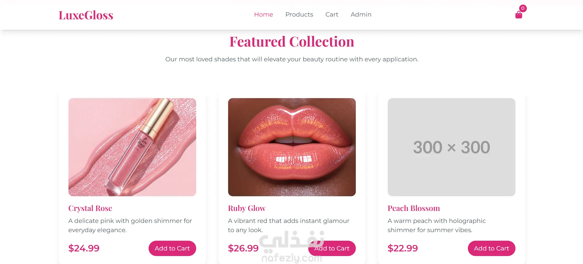 قمت بتصميم وتطوير متجر إلكتروني احترافي لعلامة تجميل باسم LuxeGloss متخصص في عرض وبيع منتجات الـ Lip Gloss بأسلوب عصري وفاخر.