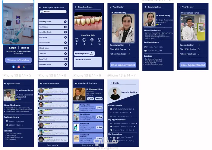 هذا المشروع عبارة عن دراسة حالة شاملة لتجربة المستخدم وواجهة المستخدم لتطبيق ذكي للعناية بالأسنان، يُرشد المريض من لحظة شعوره بالألم وحتى شفائه التام. يركز التطبيق على تخفيف الخوف، وتحسين التواصل، وتوفير تجربة سلسة وداعمة لجميع مرضى الأسنان.
