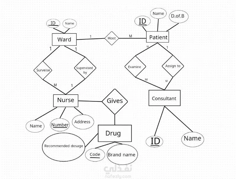 "قمت بتصميم مخطط علاقات الكيانات (ERD) لنظام مستشفى يهدف إلى تنظيم تدفق البيانات بين الأقسام الطبية المختلفة وضمان دقة المعلومات وسهولة الوصول إليها. تضمن المشروع تحليل الكيانات التالية: •إدارة المرضى (Patients): تتبع بيانات المرضى وتاريخ ميلادهم وربطهم بالأطباء الاستشاريين. •هيكلية الطاقم الطبي: تنظيم بيانات الممرضين (Nurses) والاستشاريين (Consultants) وتوزيع المهام بينهم. •إدارة الأقسام (Wards): ربط المرضى بالأقسام المناسبة وتحديد المشرفين عليها. •النظام الدوائي (Drug System): تتبع الأدوية المعطاة للمرضى من قبل الممرضين مع تحديد الجرعات الموصى بها والأسماء التجارية. المخرجات التقنية: •تحديد العلاقات (One-to-Many & Many-to-Many) بين المرضى والأطباء والأدوية. •بناء هيكل يمنع تكرار البيانات (Data Redundancy) ويضمن كفاءة استعلامات SQL لاحقاً."