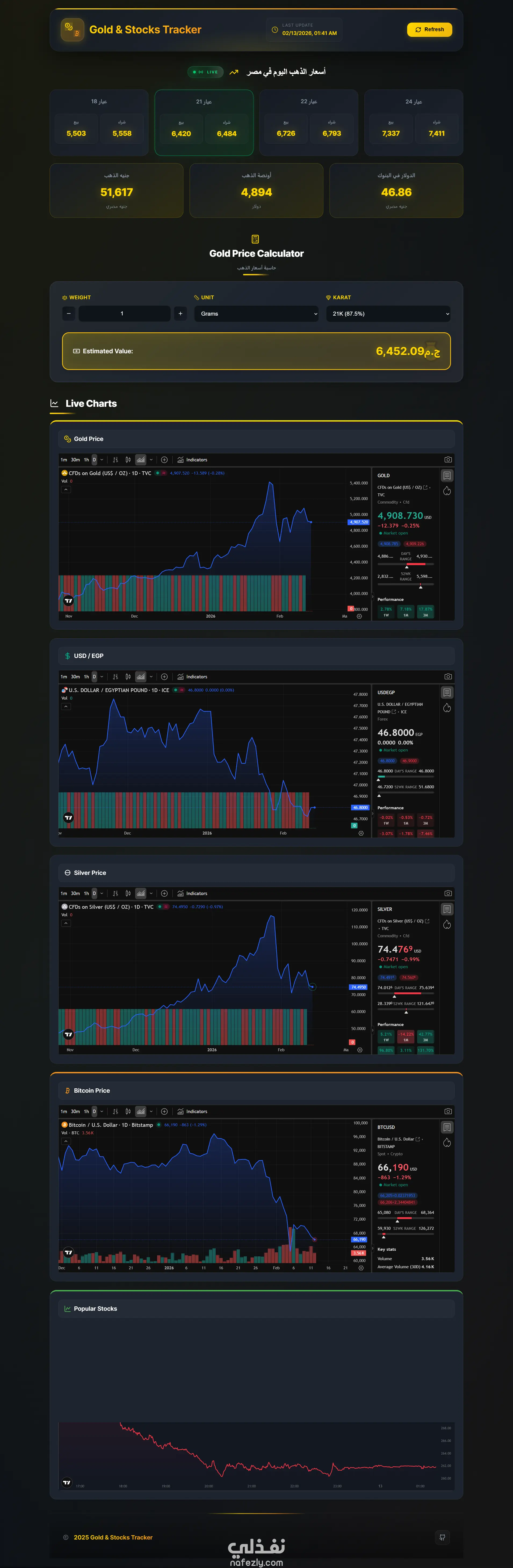 موقع متتبع أسعار الأسهم العالمية والذهب - Stocks Tracker.