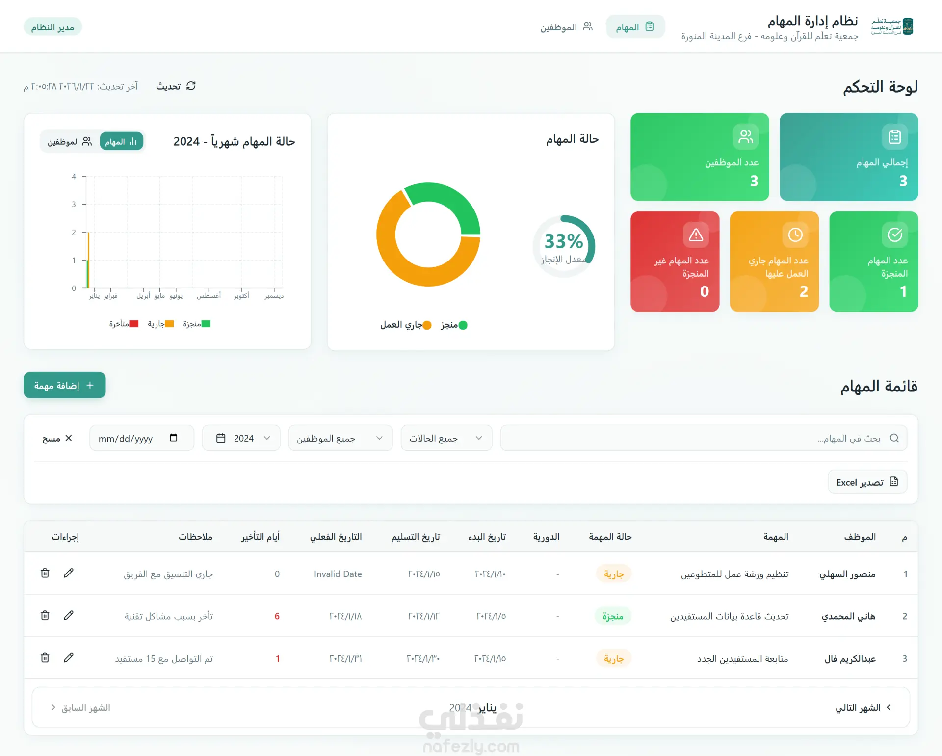 نظام إلكتروني لإدارة ومتابعة المهام لجهة تعليمية / خيرية