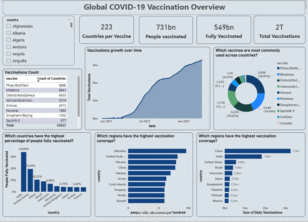 Global COVID-19 Vaccination Dashboard – تحليل بيانات التطعيم عالميًا POWER BI