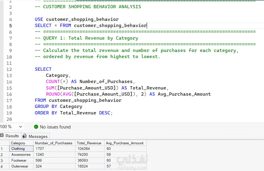 قمت بتنفيذ مشروع تحليل بيانات متكامل باستخدام SQL بهدف استخراج رؤى استراتيجية من قاعدة بيانات العملاء لدعم اتخاذ القرار وتحسين الأداء التجاري.