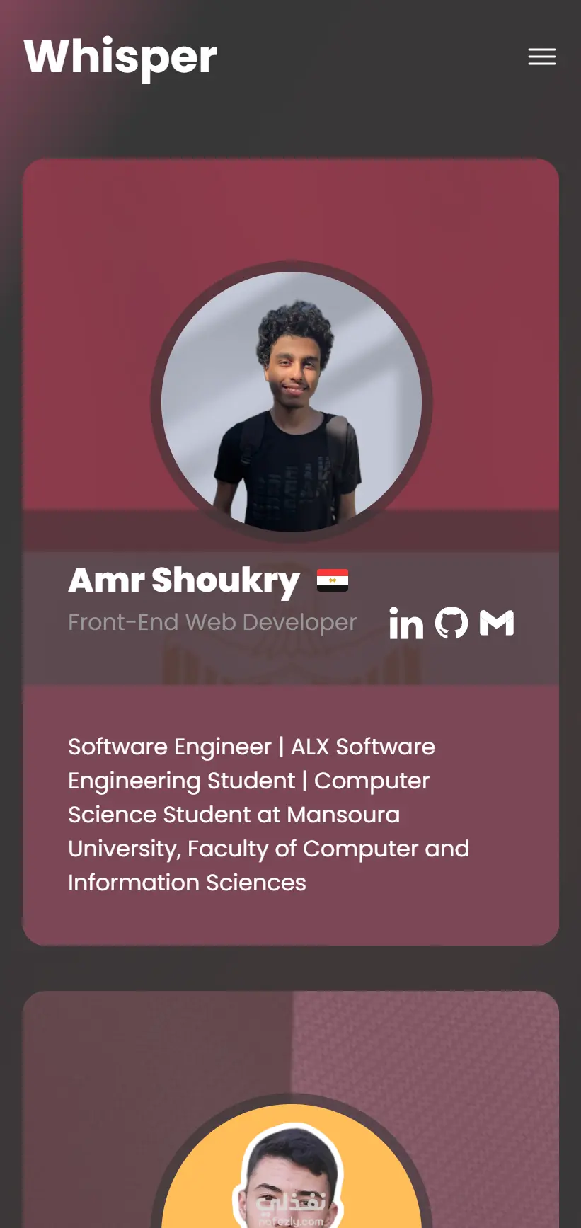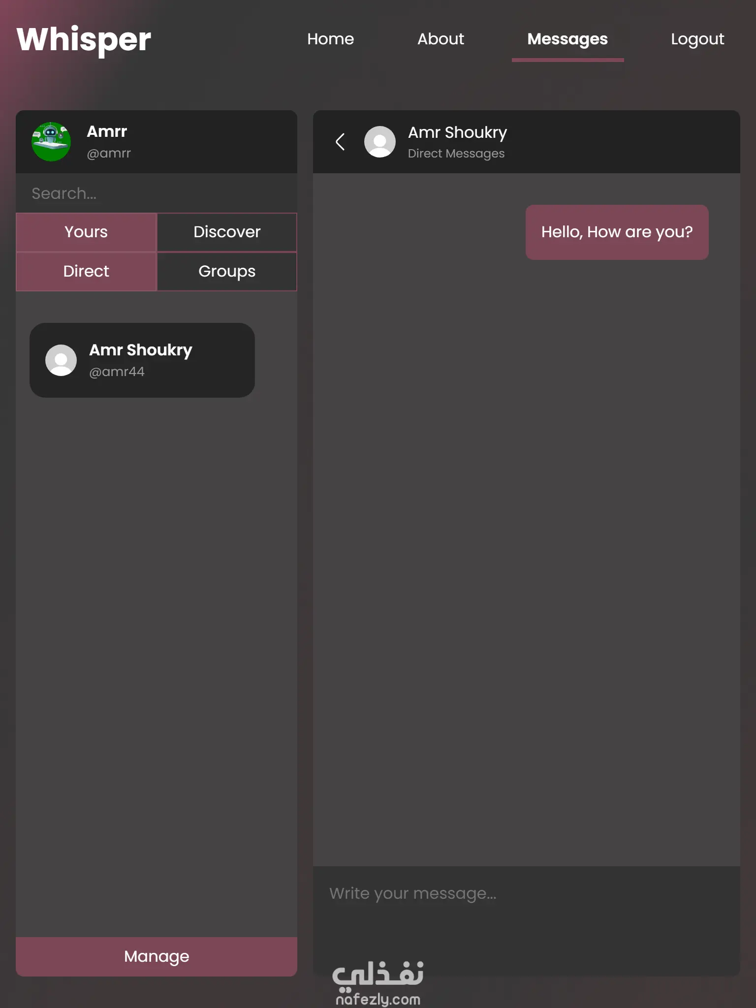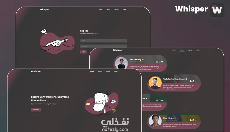 طوّرت موقع Whisper باستخدام React وTailwind CSS وReact Query وSocket.IO وGraphQL وReact Hook Form وAxios وZustand وTypeScript.