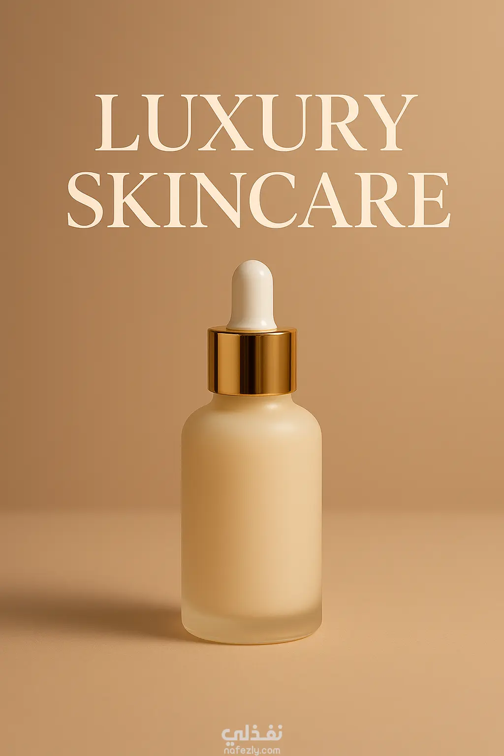 تصميم إعلاني بصري لمنتج عناية بالبشرة بأسلوب فاخر ومينيمال، يعتمد على لوحة ألوان دافئة وإضاءة ناعمة لإبراز نقاء المنتج وجودته العالية. التكوين البسيط مع المساحات الهادئة يخلق إحساسًا بالثقة والرقي، مناسب لحملات العلامات التجارية الفاخرة التي تركّز على الجمال، النقاء، والتميز.
