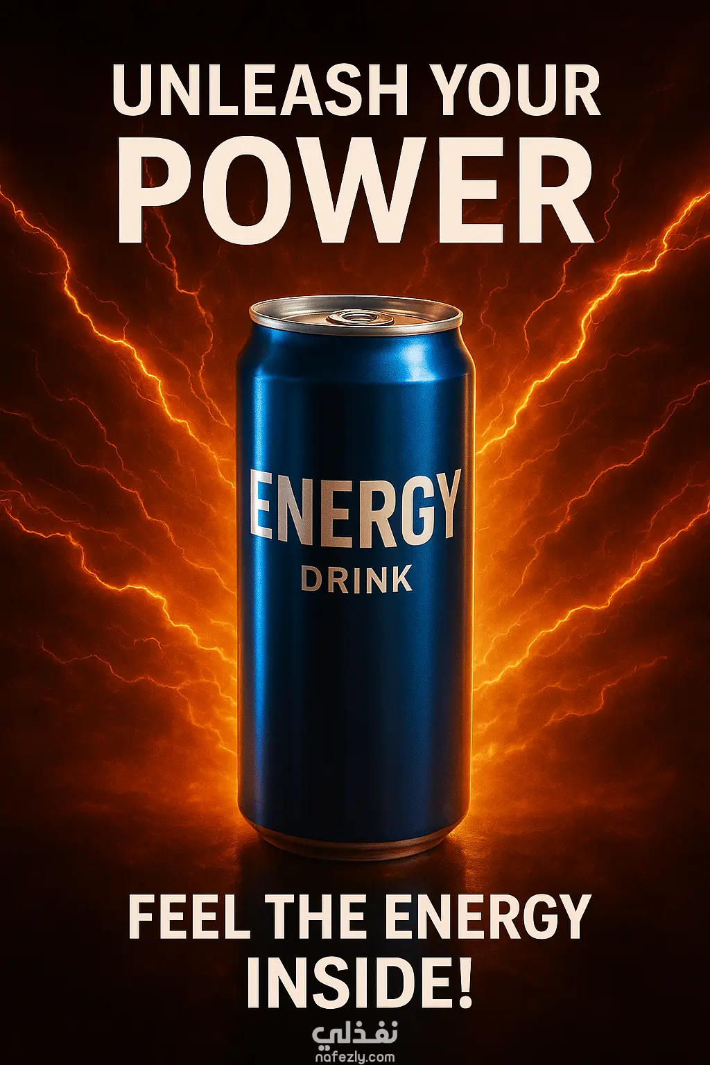 تصميم إعلان بصري ديناميكي لمشروب طاقة يعتمد على مؤثرات ضوئية قوية وألوان حادة لخلق إحساس بالقوة والانفجار الطاقي. التكوين البصري يوصل رسالة الحيوية والتحفيز ويعكس هوية العلامات التجارية الشبابية عالية التأثير، مع إبراز المنتج كرمز للطاقة، الأداء، والانطلاق.
