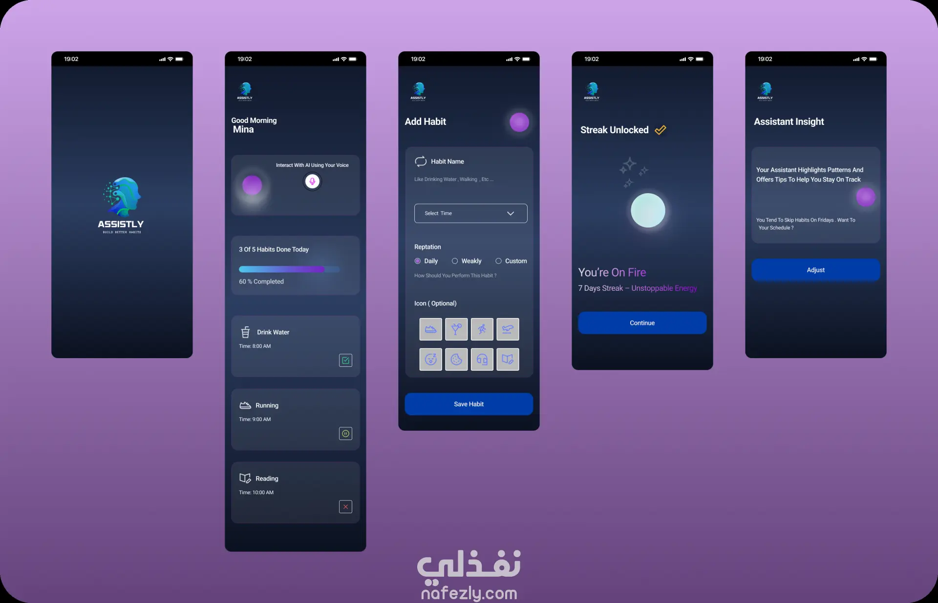 Assistly لا يقتصر على تتبع العادات فقط، بل يعمل كمساعد شخصي ذكي يساعد المستخدم على فهم أنماط سلوكه وتحسينها بطريقة مستدامة ومحفزة.