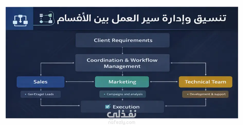 أنظم وأنسق سير العمل بين مختلف الإدارات لضمان تنفيذ المهام بسلاسة وبدون تعارض. أحول متطلبات العملاء إلى خطة عمل واضحة ومحددة الخطوات. أتابع الجداول الزمنية وأضمن الالتزام بمواعيد التسليم. أعمل على تحسين التواصل الداخلي لتقليل الأخطاء وتسريع الإنجاز.