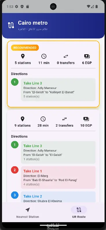 قبل: الحاجة إلى وسيلة مبتكرة وتفاعلية لعرض سابقة أعمالي وخبراتي البرمجية تتجاوز مجرد ملفات الـ PDF التقليدية. التحدي: بناء تطبيق سريع الأداء، متوافق مع شاشات الموبايل والويب، يعرض تفاصيل المشاريع والحلول التقنية بشكل جذاب ومنظم. الفكرة: تصميم وتطوير تطبيق "بورتفوليو" يعتمد على واجهة مستخدم (UI) عصرية، مع هيكلة البيانات لعرض التحديات والحلول لكل مشروع بشكل منفصل التنفيذ: * استخدام تقنيات الـ Slivers لعمل واجهات مرنة وتفاعلية (SliverAppBar) تنظيم الكود باستخدام معمارية نظيفة لسهولة التعديل والإضافة مستقبلاً. دمج الصور الشخصية وصور المشاريع (Shyal & Notes App) في الـ Assets الخاصة بالتطبيق. النتيجة: تطبيق متكامل يعمل على كافة المنصات، يتيح للعملاء استكشاف كود المشاريع وتفاصيل التنفيذ بضغطة زر واحدة. قبل: يضطر المستخدم إما لفتح تطبيقات خرائط عامة لا تدقيق فيها لتفاصيل المترو (مثل التبديل بين الخطوط)، أو سؤال المارة عن أقرب محطة وتكلفة التذكرة، مما يستهلك وقتاً ومجهوداً. التحدي: توفير حل "شامل" يخدم نوعين من المستخدمين في آن واحد: (1) التائه الذي لا يعرف موقعه بالنسبة للمحطات، و(2) الخبير الذي يعرف محطته لكنه يجهل تفاصيل "التحويلات" (Transfers) والتكلفة المتغيرة. الفكرة: بناء تطبيق ذو مسارين ذكيين: المسار الأول (الاستكشافي): يعتمد على الحساسات الجغرافية (GPS) لربط المستخدم فوراً بأقرب نقطة دخول للمترو. المسار الثاني (التخطيطي): محرك حسابي دقيق يحلل تقاطعات الخطوط (Intersections) لتقديم خارطة طريق كاملة (أين ستبدل الخط؟ وبأي اتجاه؟). التنفيذ: Logical Branching: استخدمت منطق برمجياً مرناً (Logic Handling) يفصل بين رحلة "البحث باللوكيشن" ورحلة "البحث اليدوي". Data Precision: دمج قاعدة بيانات محدثة بأسعار التذاكر وعدد المحطات لضمان دقة المعلومة المالية قبل الركوب. Interactive UI: تصميم واجهة تفاعلية توضح نقاط التحويل بين الخطوط (Interchanges) بشكل بصري يمنع التشتت. النتيجة: تقليل وقت التخطيط للرحلة بنسبة كبيرة، وتوفير دليل رقمي متكامل يغني عن السؤال، مما يضمن للمستخدم رحلة خالية من المفاجآت سواء في المسار أو التكلفة.