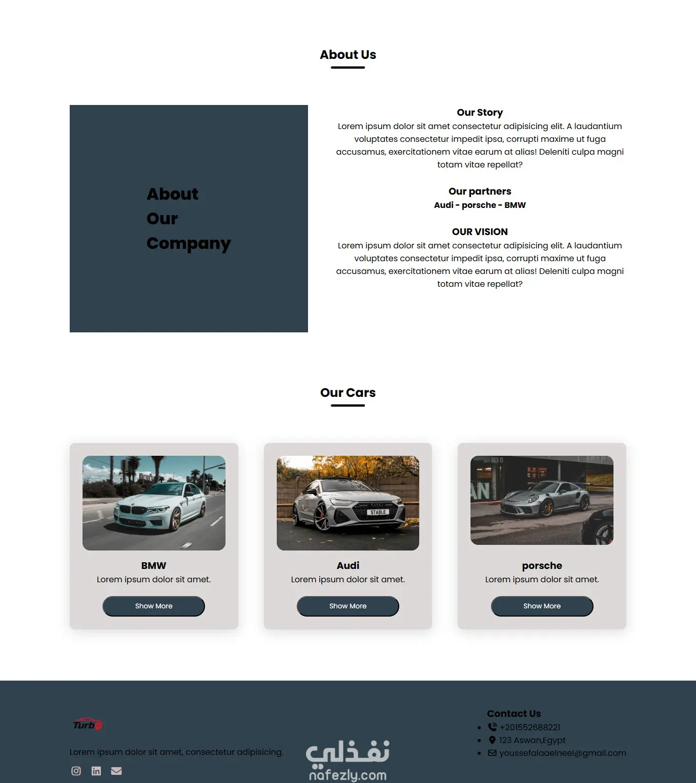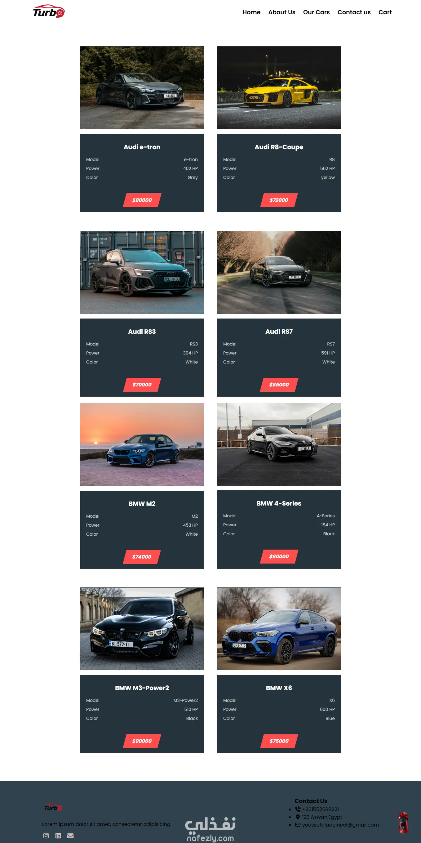 تصميم وتطوير موقع معرض سيارات احترافي "Turbo Cars " Car Showroom Website