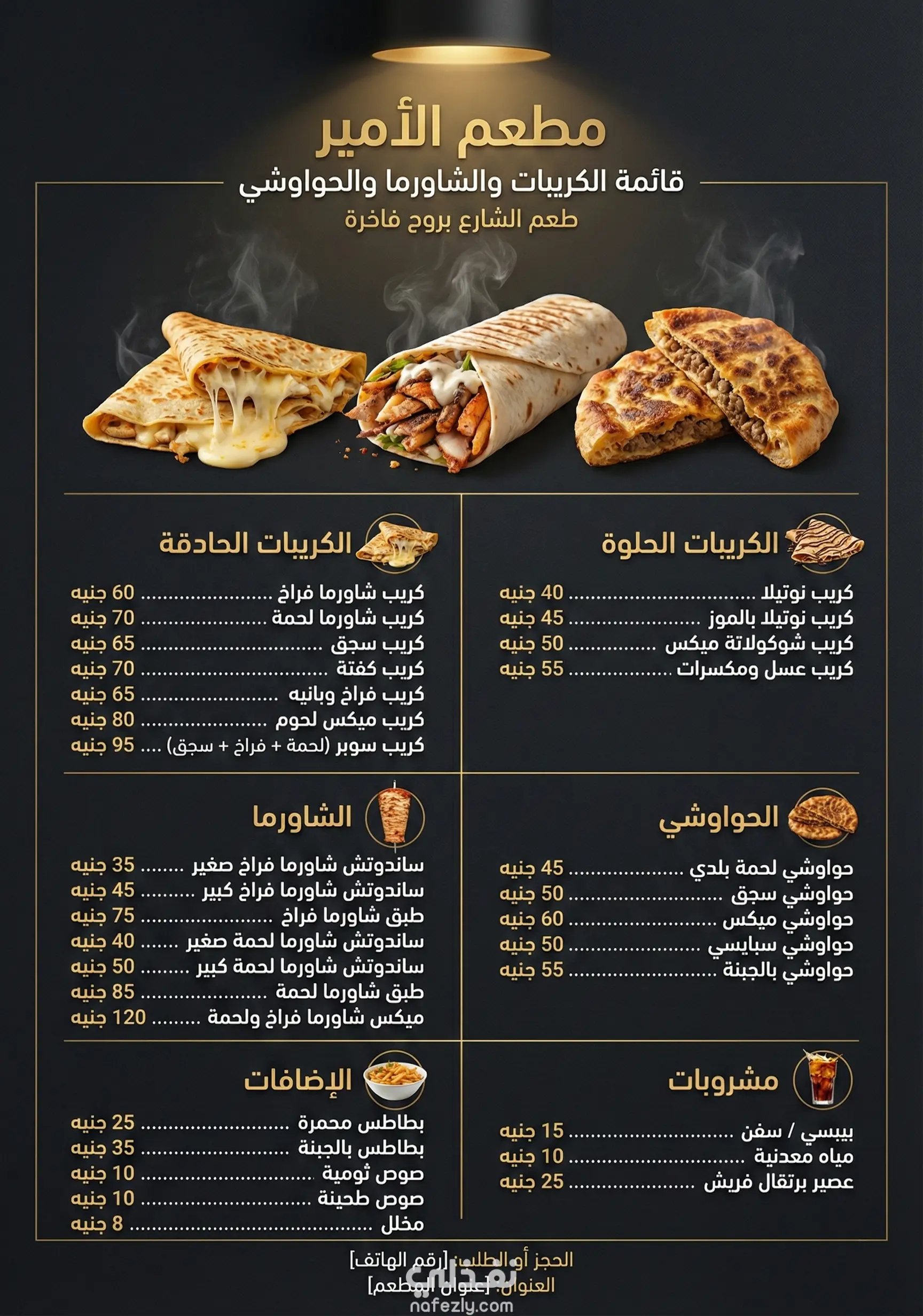 تصميم المنيو مش مجرد شكل حلو، ده "أداة تسويق" لو اتعملت صح هتزود أرباحك وتوجه العميل يطلب اللي أنت عاوزه. المنيو الاحترافي بيسهل الاختيار وبيبرز القيمة الحقيقية لأكلك. لو بتدور على مصمم يفهم سيكولوجية المطاعم ويحول قائمة طعامك لتجربة بصرية مميزة، أنا بقدم لك: توزيع ذكي للأصناف يبرز الأطباق الأكثر ربحاً لمطعمك. تصميمات تناسب المنيو الورقي، الشاشات المضيئة، والسوشيال ميديا. مرونة واهتمام بالتفاصيل عشان نوصل لأفضل نتيجة ترضيك وترضي عميلك. جاهز تنقل شكل مطعمك لمستوى تاني؟ كلمني خاص ونتناقش في التفاصيل! 🚀