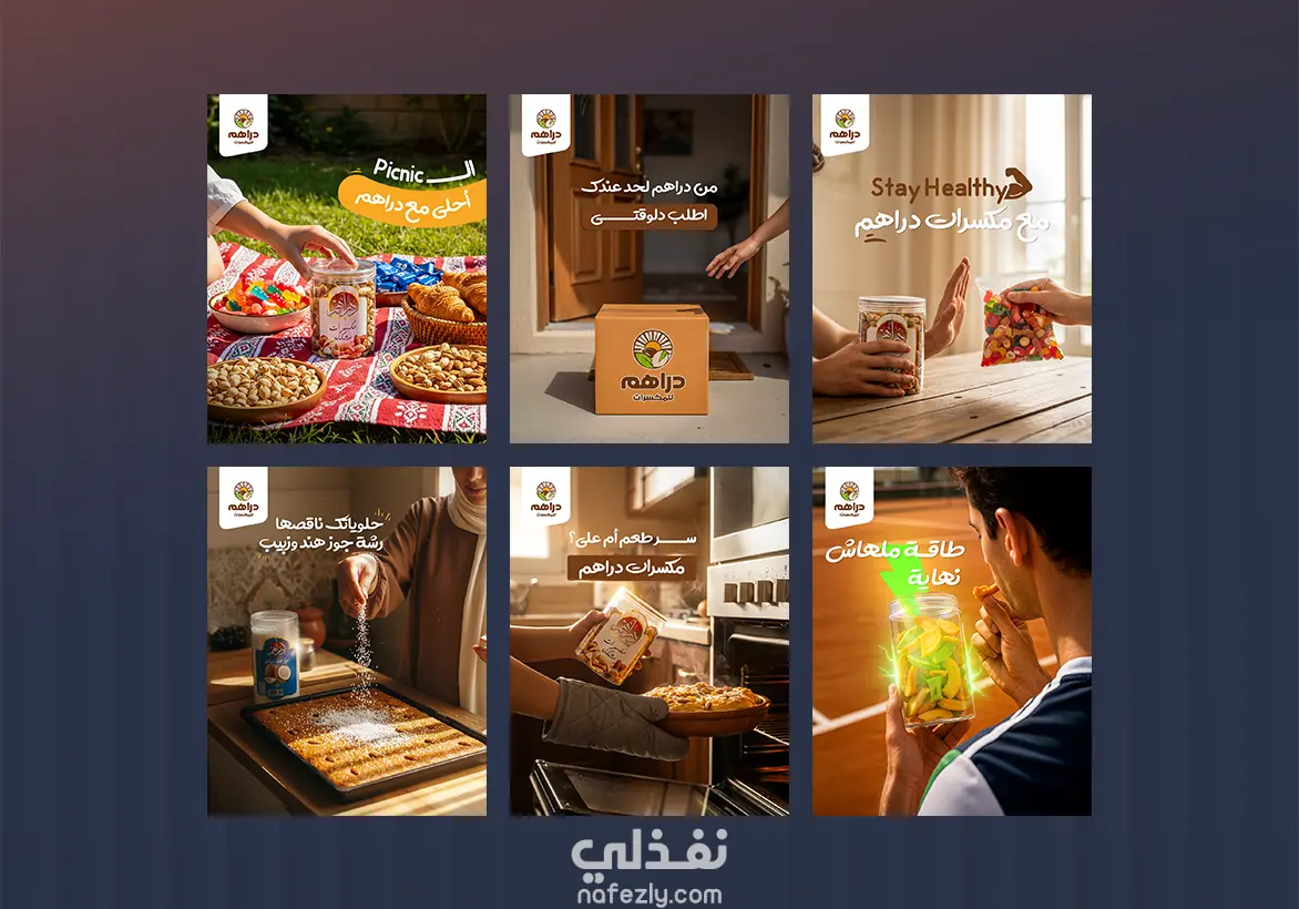 تصاميم سوشيال ميديا لبائع جملة في مجال المكسرات