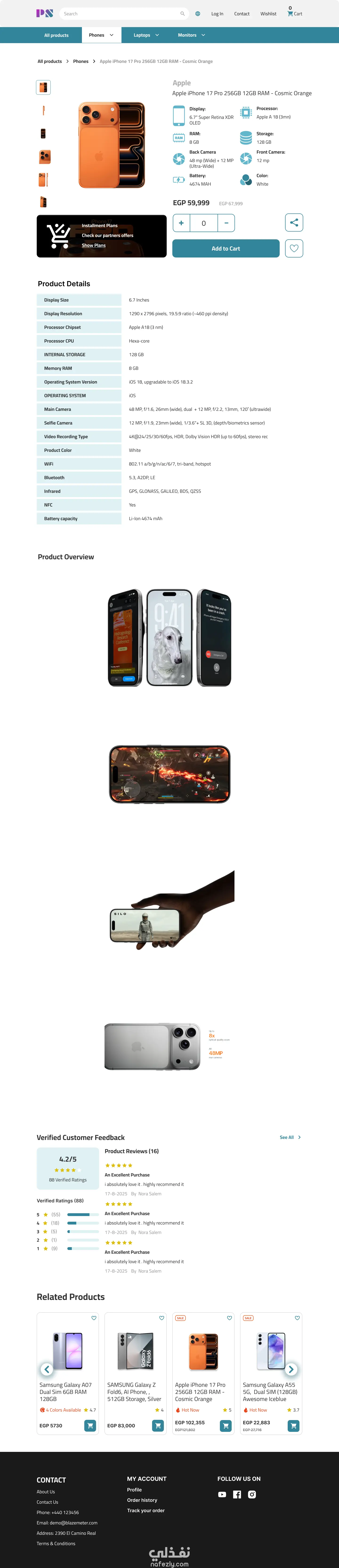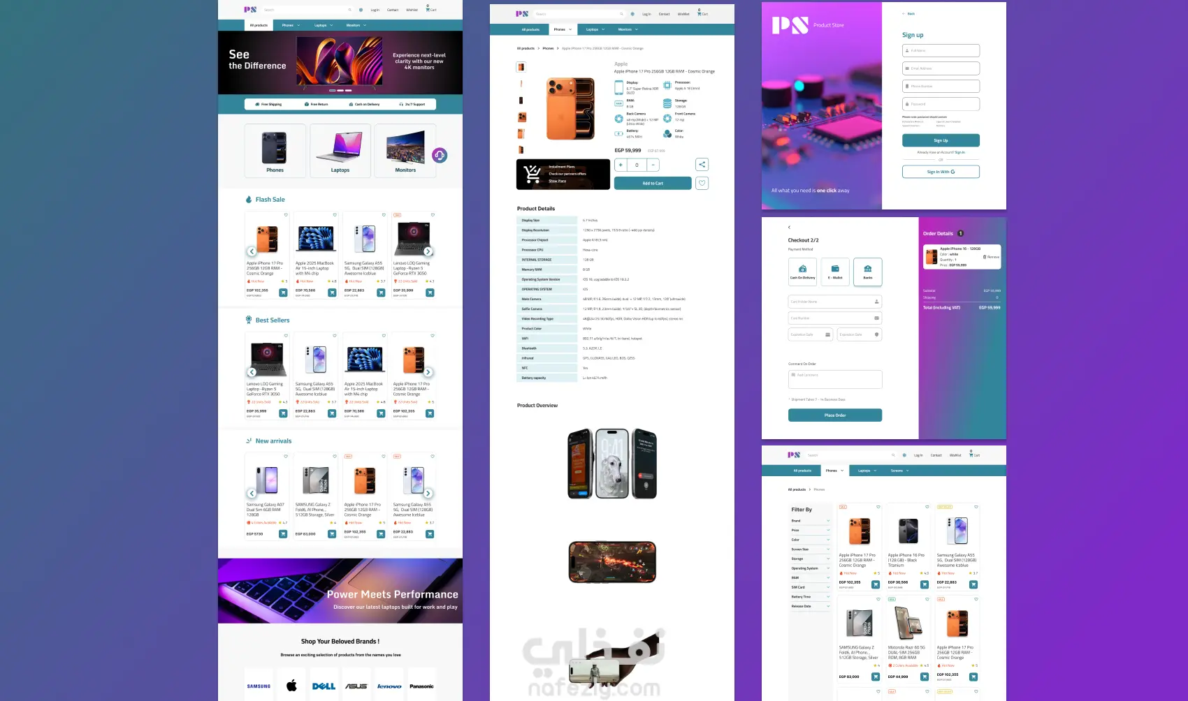 بدأت الدراسة بفهم سلوك المستخدمين المستهدفين، وتحديد احتياجاتهم الأساسية عند تصفح المتجر، مثل سهولة البحث عن المنتجات، فهم التفاصيل، والوصول السريع إلى خيارات الدفع والشحن. بعد ذلك، انتقلت إلى تصميم هيكلية صفحات واضحة وتدرّج منطقي في المحتوى، مع استخدام أنماط واجهات حديثة (Modern UI) تضمن توازن بين الجمال والوظيفة.