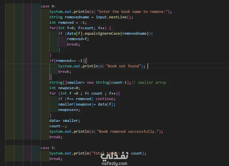 استخدمت java في عمل سيست مكتبة متاجوب فيه خصائص متعددة منها اضافة كتب و حذفها و البحث عنها و عرضها
