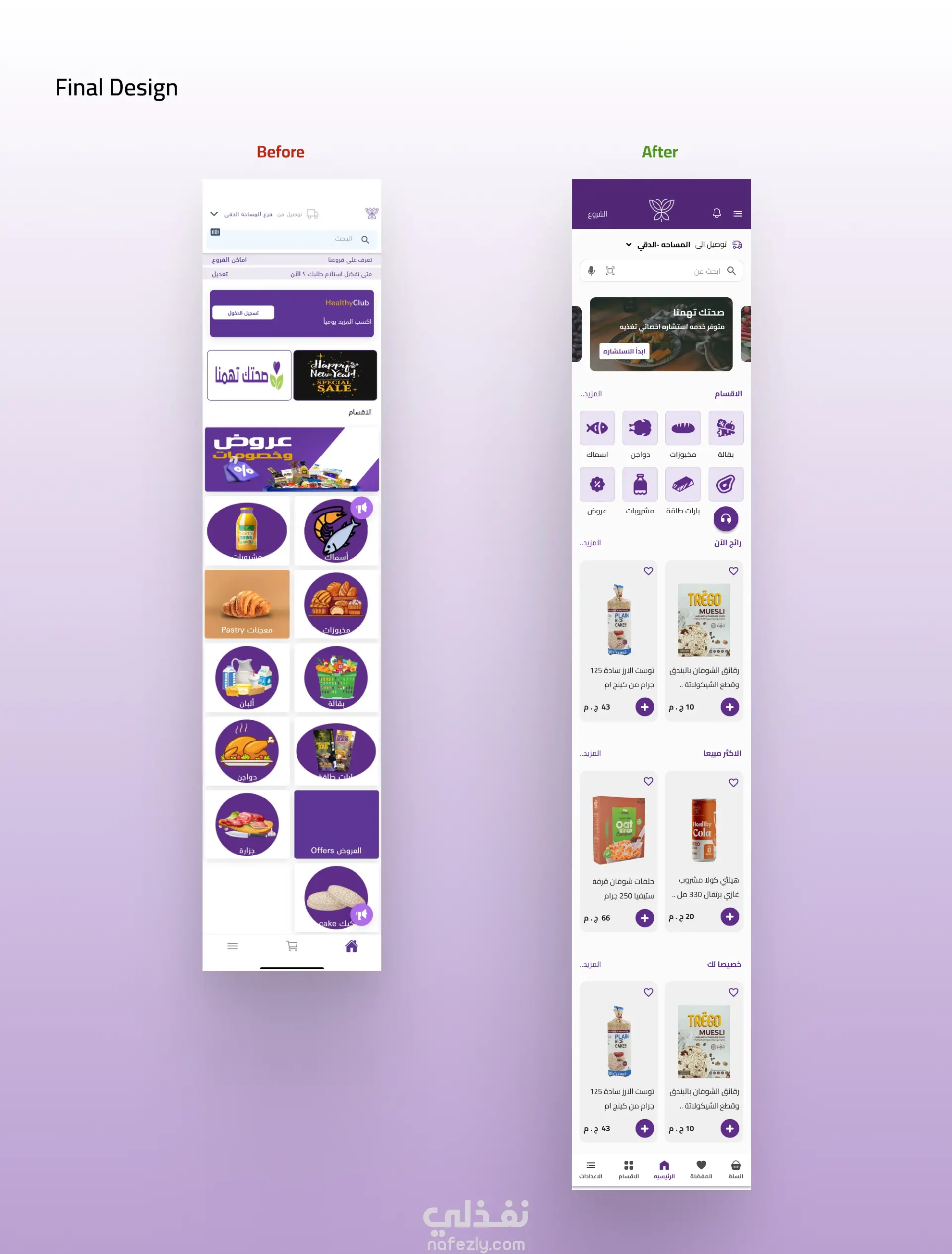 في هذا المشروع، قمت بإعادة تصميم الصفحة الرئيسية لتطبيق Healthy & Tasty مع إجراء تقييم شامل لتجربة المستخدم بهدف تحسين طريقة اكتشاف المستخدمين للمنتجات والتفاعل مع التطبيق. تم تحليل التصميم الأصلي لتحديد المشاكل التي تؤثر على وضوح التنقل وتجربة المستخدم العامة.