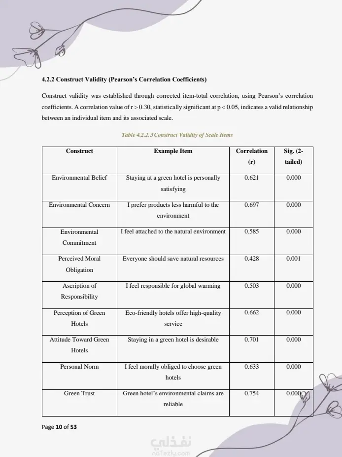اختبار صدق البناء باستخدام معاملات ارتباط بيرسون