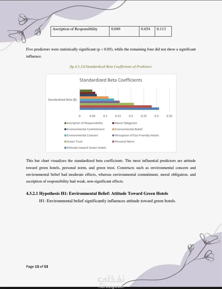 تفسير معاملات Beta المعيارية وقيم t ومستويات الدلالة