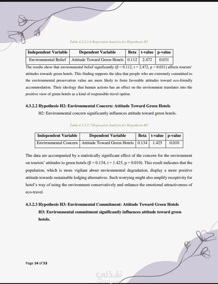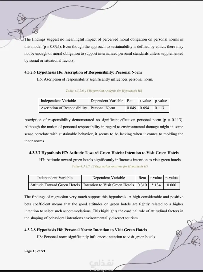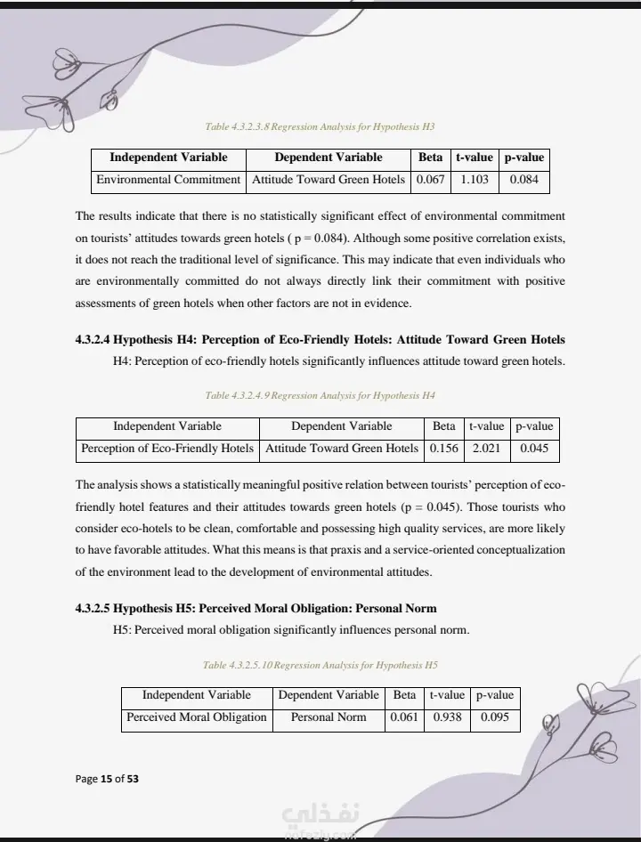 تم عرض النتائج في جداول تحليلية منظمة مع تفسير أكاديمي يعكس فهمًا عميقًا للتحليل الإحصائي.