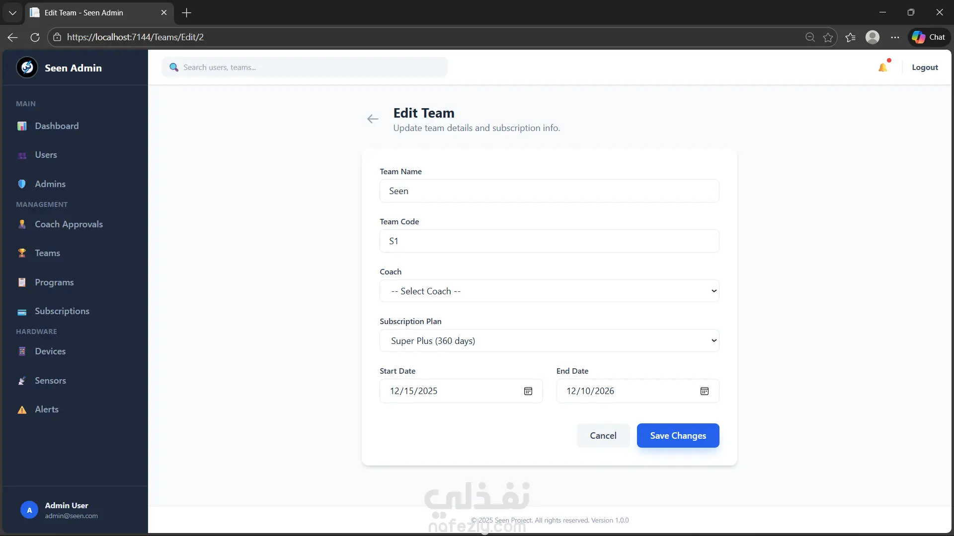SEEN – Sports Team Management System (Web & Mobile Application)