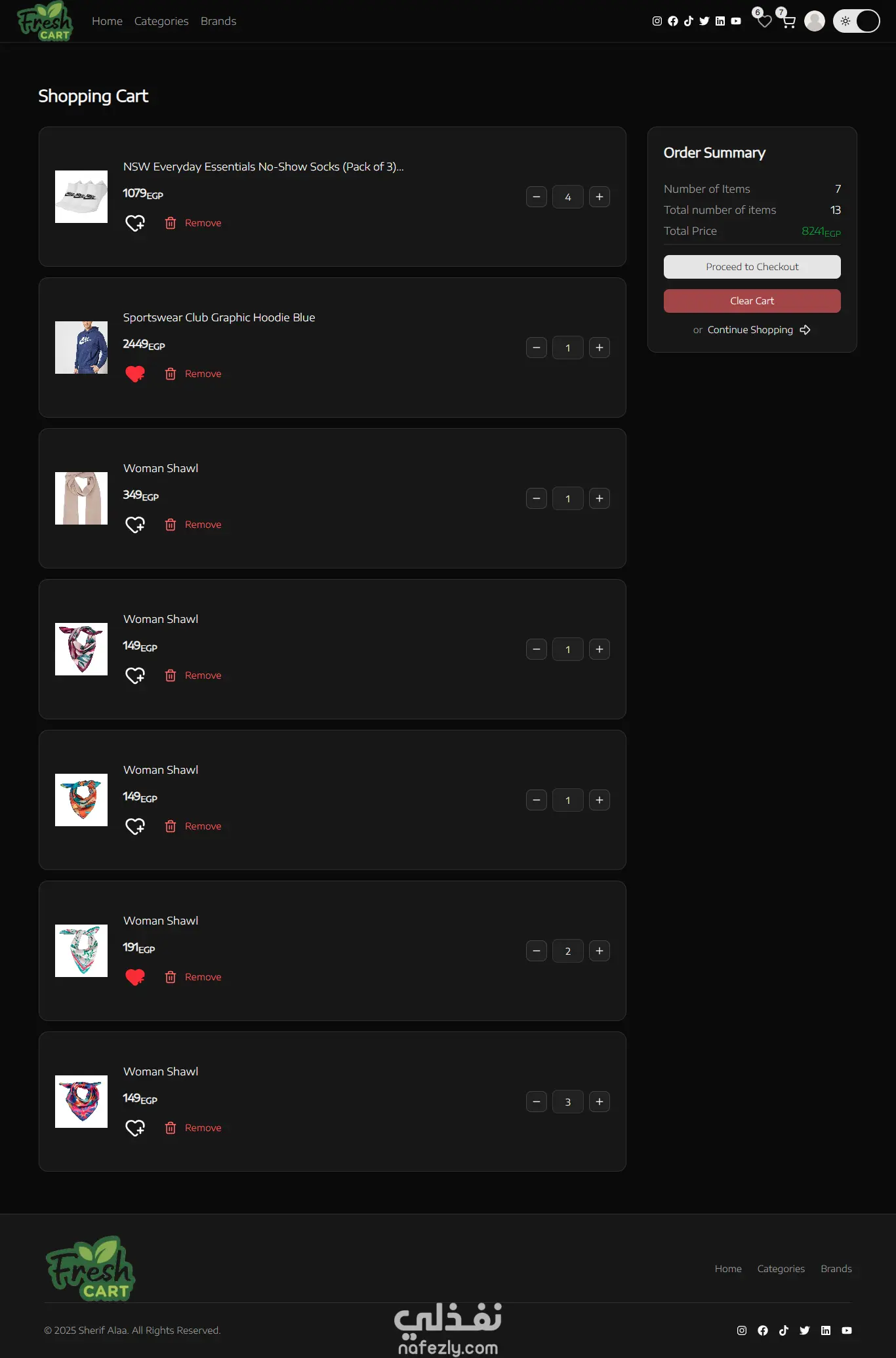 شروع متجر إلكتروني حديث يركز على تجربة المستخدم والأداء العالي. تم بناء المشروع ليكون منصة بيع متكاملة تتيح للمستخدمين تصفح المنتجات، إدارتها، وإتمام عمليات الشراء بسلاسة. أهم المميزات: 1- نظام تسوق متكامل: عرض المنتجات حسب الفئات، إضافة المنتجات إلى السلة )، ونظام المفضلة. 2- واجهة مستخدم احترافية: تصميم عصري متجاوب بالكامل يتناسب مع جميع الشاشات. 3- بحث وتصفية ذكي: إمكانية البحث عن المنتجات وتصفيتها بناءً على السعر أو الفئة. 4- إدارة الحالة: استخدام تقنيات متطورة لضمان تحديث البيانات لحظياً دون إعادة تحميل الصفحة. طريقة التنفيذ: تم الاعتماد على هيكلية برمجية منظمة باستخدام: 1- React.js: لبناء المكونات القابلة لإعادة الاستخدام. 2- Tailwind CSS: لتصميم واجهات جذابة وسريعة في التحميل. 3- React Query / Axios: للتعامل مع البيانات وجلبها من واجهة برمجية (API). 4- Zod & React Hook Form: لضمان دقة إدخال البيانات في النماذج.
