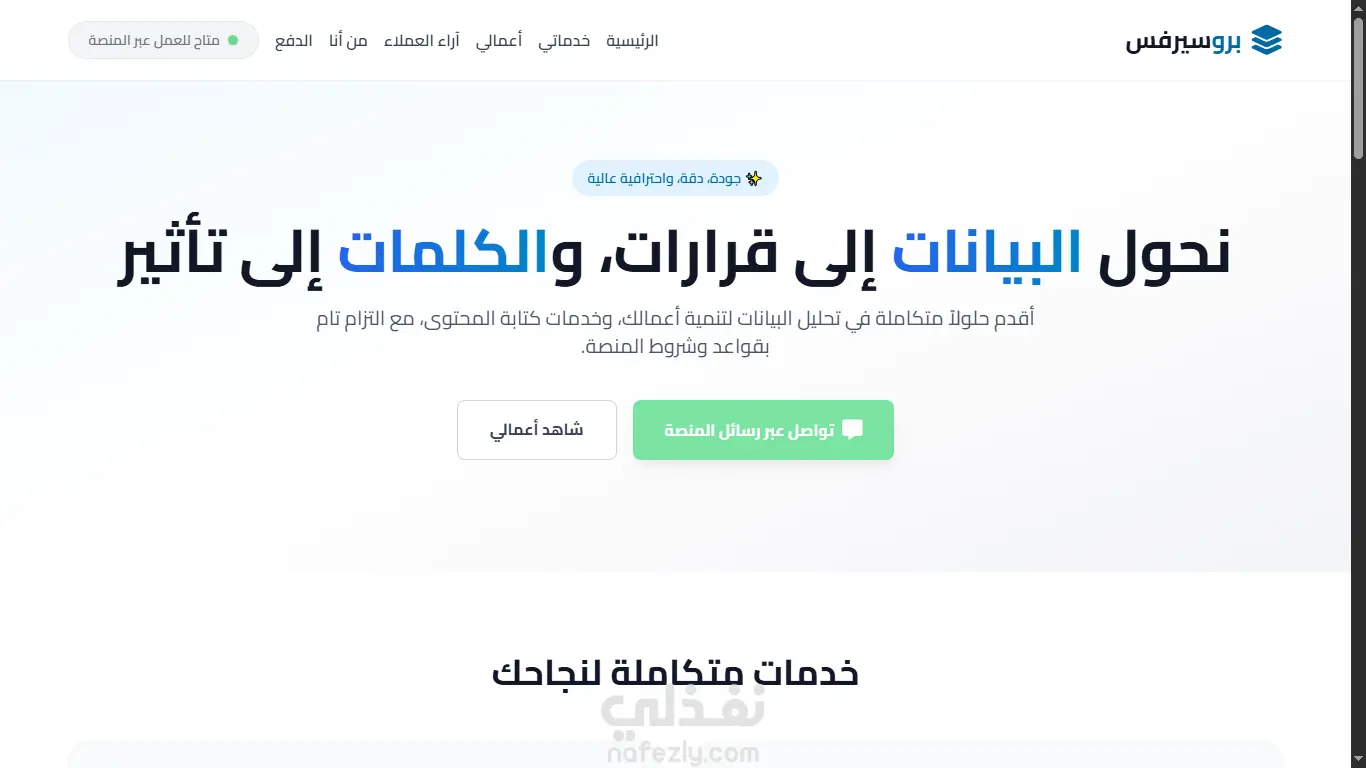أقدم لكم نموذجاً تطبيقياً لواجهة موقع شخصي (معرض أعمال) يجمع بين قوة التحليل وجمال التصميم التقني. تم بناء هذا المشروع ليكون واجهة مشرفة للمستقلين المحترفين.
