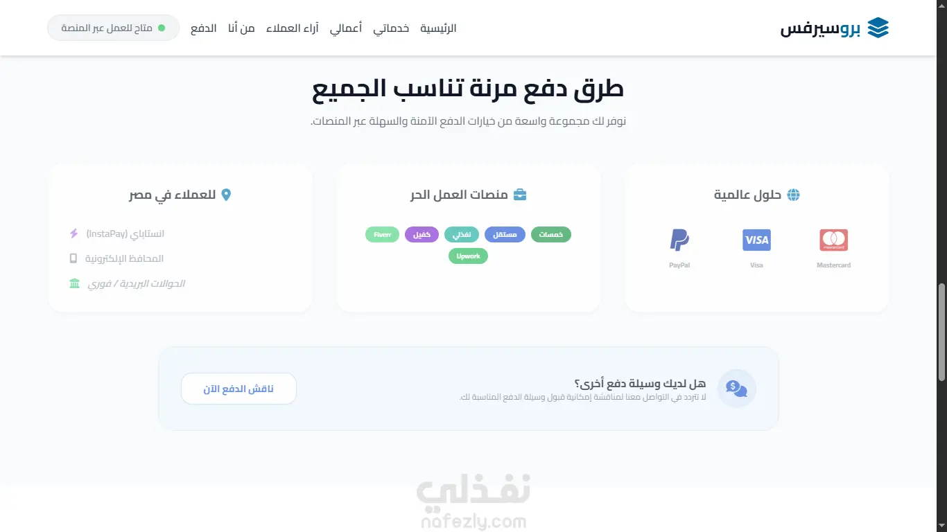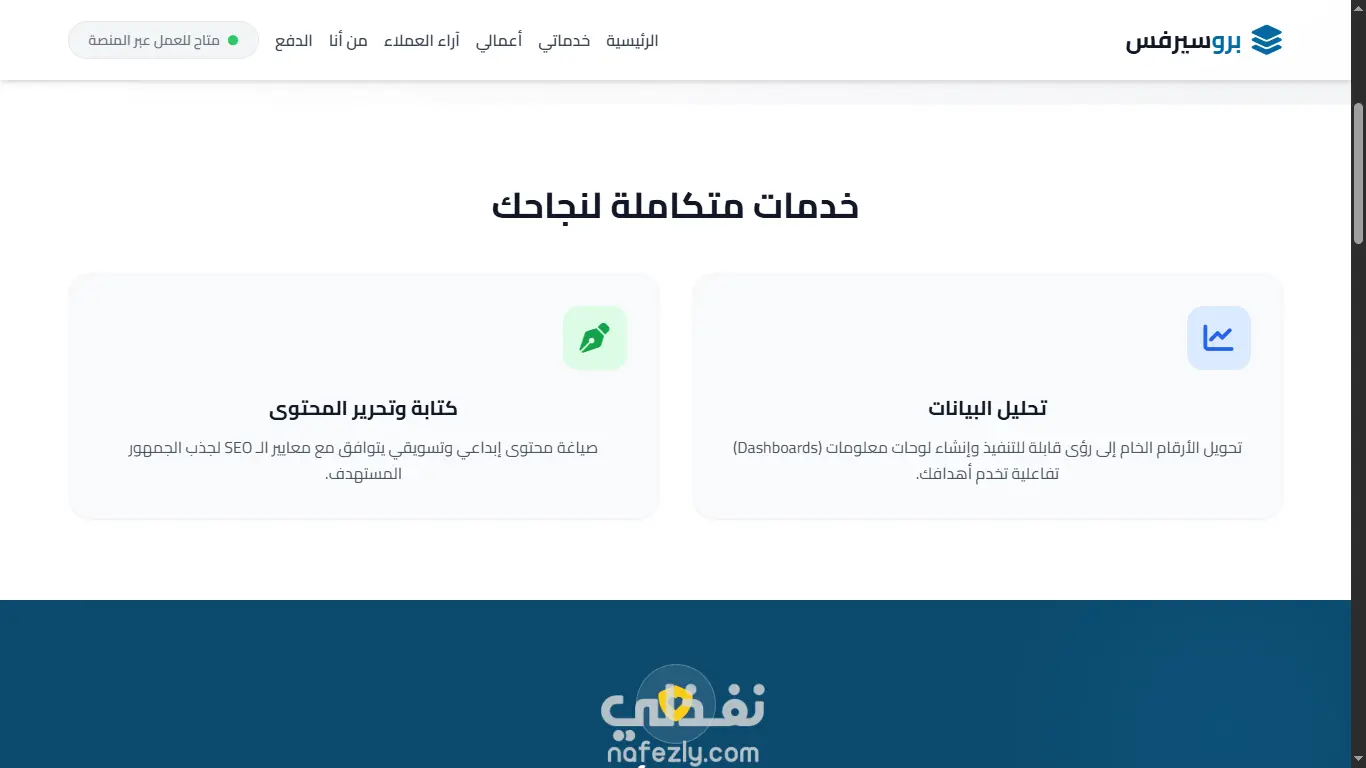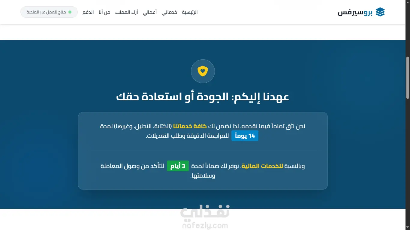 - تنظيم دقيق يشمل (الخدمات، الضمان، آراء العملاء، وسائل الدفع، ونموذج التواصل).