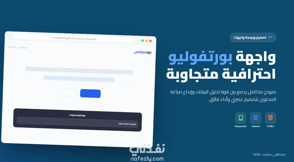 - استخدام HTML5 و Tailwind CSS لضمان أداء فائق السرعة وتصميم عصري.