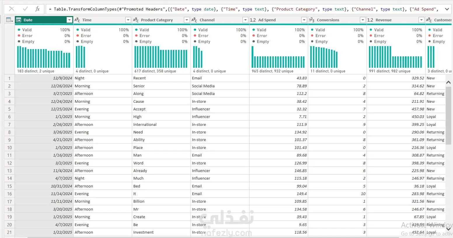 تحليل الإيرادات حسب فئة المنتج
