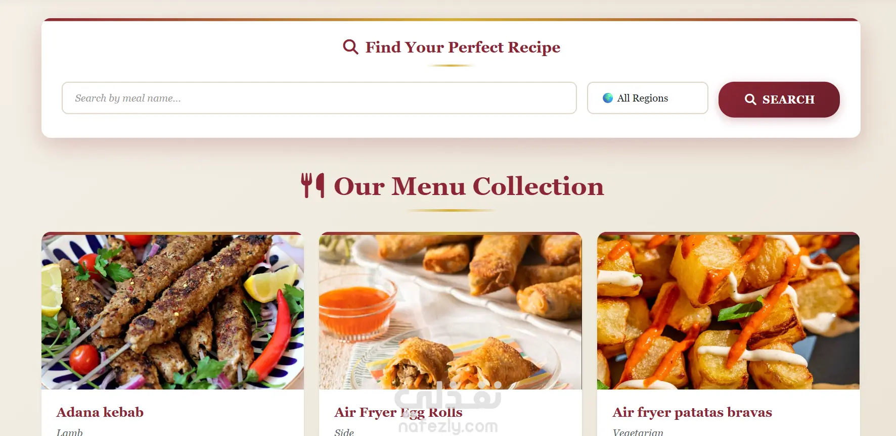 قسم بحث للعثور على الوجبات بسهولة