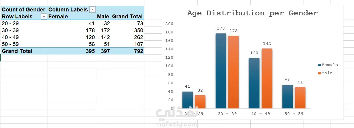 دراسة توزيع الفئات العمرية والنوع الاجتماعي (Age & Gender Distribution)، حيث تبين أن الفئة العمرية الأكبر تتراوح بين 30-39 عاماً.