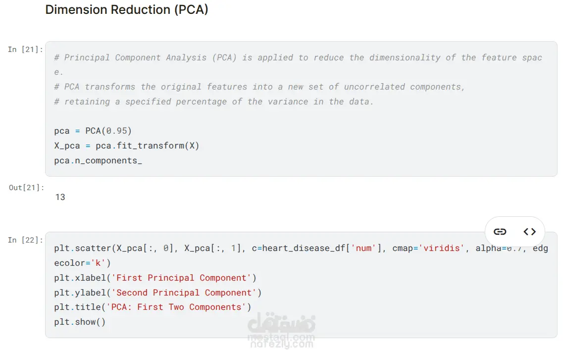 اصبح الامر اسهل علي الاطباء ووفر كثير من الوقت مع توقع مخاطر أمراض القلب باستخدام تعلم الآلة تفاصيل المشروع: حولت البيانات الطبية المعقدة إلى أداة تنبؤ دقيقة تساعد في التشخيص المبكر لأمراض القلب. يهدف المشروع إلى تقديم حل تقني يقلل من مخاطر التأخر في اكتشاف الحالات الحرجة عبر تحليل المؤشرات الحيوية بدقة عالية. المهام المنفذة: - معالجة وتطهير البيانات الطبية الخام لضمان جودة المدخلات البرمجية. - إجراء هندسة الميزات (Feature Engineering) لتعزيز قدرة النموذج على التوقع. - استخدام تقنية PCA لتقليل أبعاد البيانات وتحسين كفاءة المعالجة. - تدريب ومقارنة عدة خوارزميات مثل SVM و Random Forest و Logistic Regression. - تطوير وتحسين نموذج XGBoost للوصول إلى أفضل أداء ممكن. - بناء واجهة مستخدم تفاعلية باستخدام Streamlit تتيح إدخال 13 معيارًا طبيًا والحصول على نتائج فورية. الأدوات والتقنيات: - لغة البرمجة Python. - مكتبات Scikit-Learn و Pandas و NumPy. - خوارزمية XGBoost المتقدمة. - إطار عمل Streamlit لتطوير تطبيقات الويب. النتائج المحققة: - حقق النموذج دقة إجمالية بنسبة 86.6% في التنبؤ بالحالات. - وصلت نسبة الاستدعاء (Recall) إلى 94.8% مما يضمن دقة عالية في اكتشاف الإصابات الفعلية. - بلغت قيمة F1-Score حوالي 89.6% مما يعكس توازنًا ممتازًا بين الدقة والحساسية. - إطلاق تطبيق ويب حي يسهل استخدامه من قبل غير المتخصصين في التقنية.