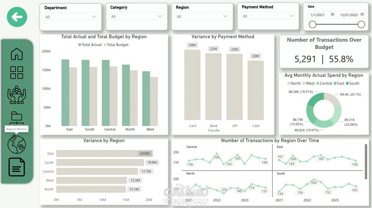 ○ الكفاءة الإقليمية (Regional Efficiency): مقارنة أداء الميزانية عبر المناطق الجغرافية.