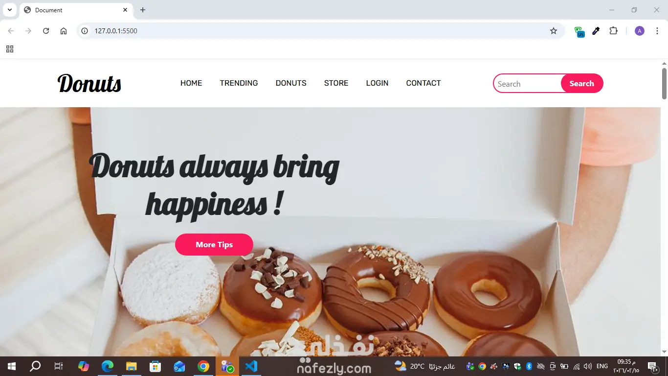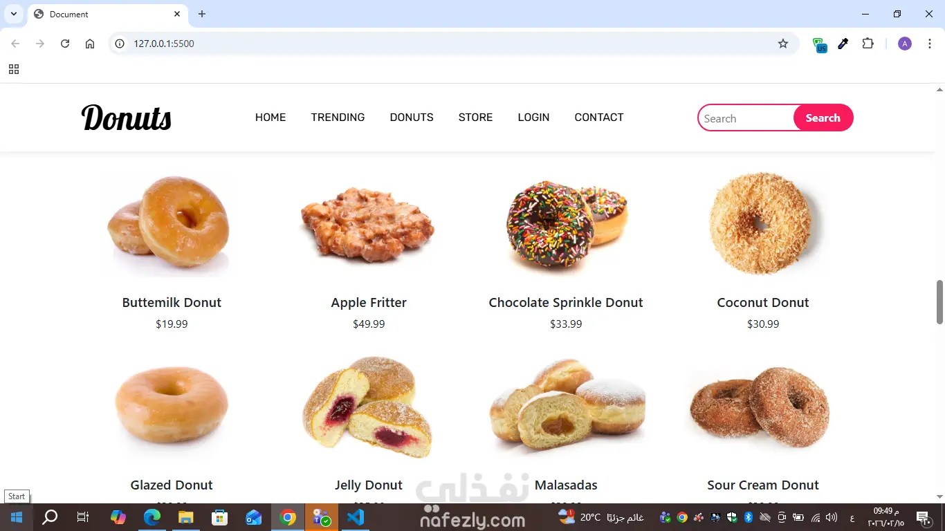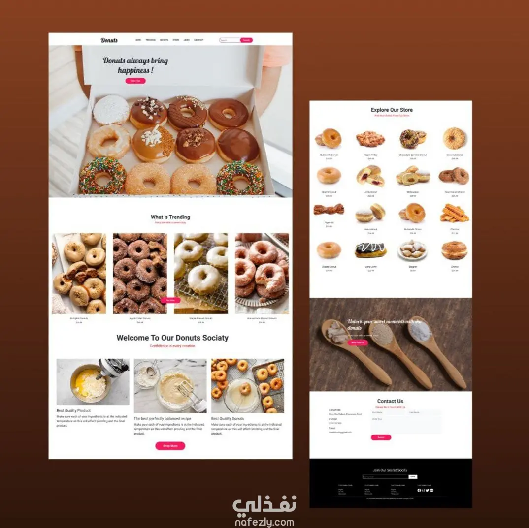 متجر دونتس إلكتروني مع تصميم متجاوب وعرض المنتجات