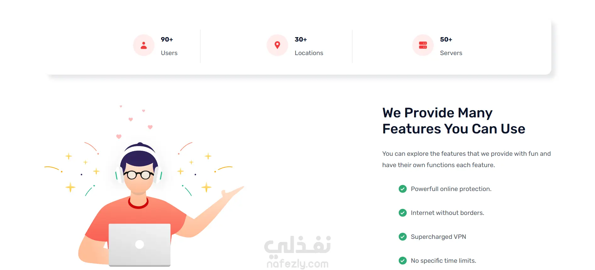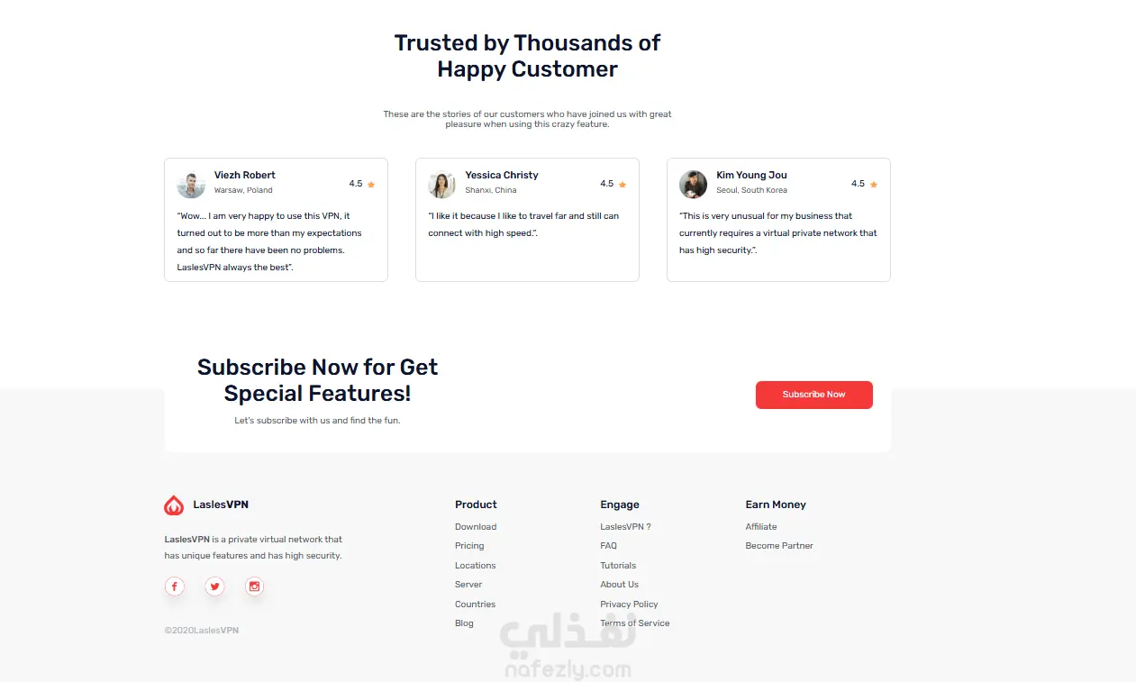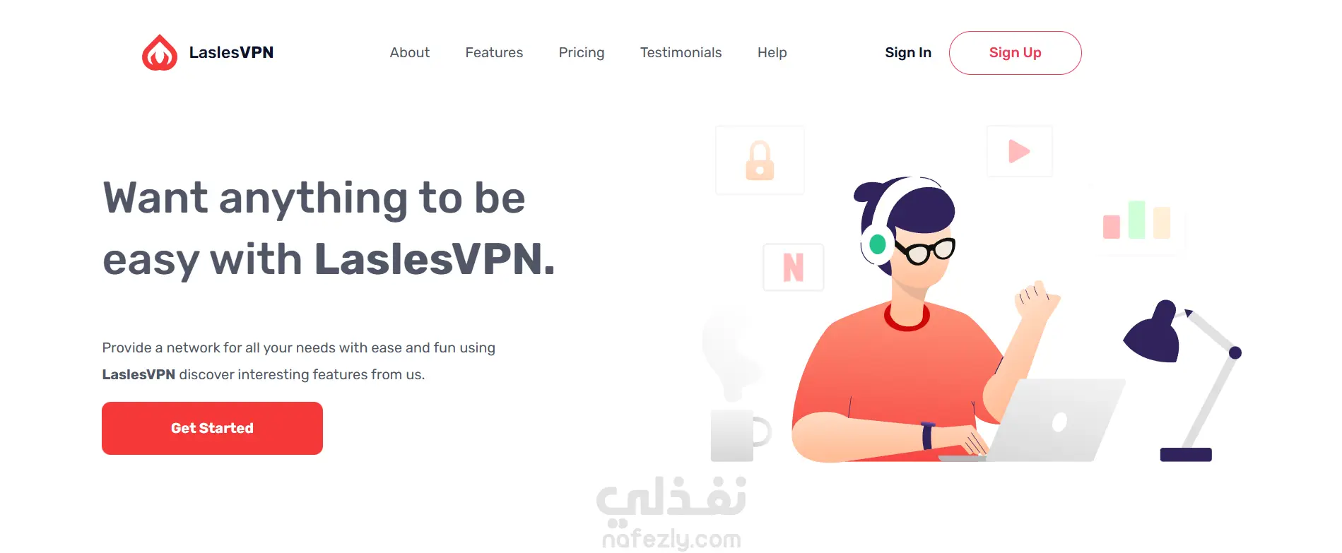 Fully responsive landing page for LaslesVPN company, developed using HTML, CSS, JavaScript