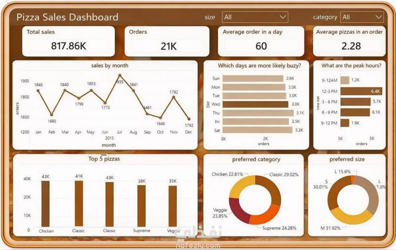تحليل مبيعات مطعم بيتزا وتصميم لوحة تحكم