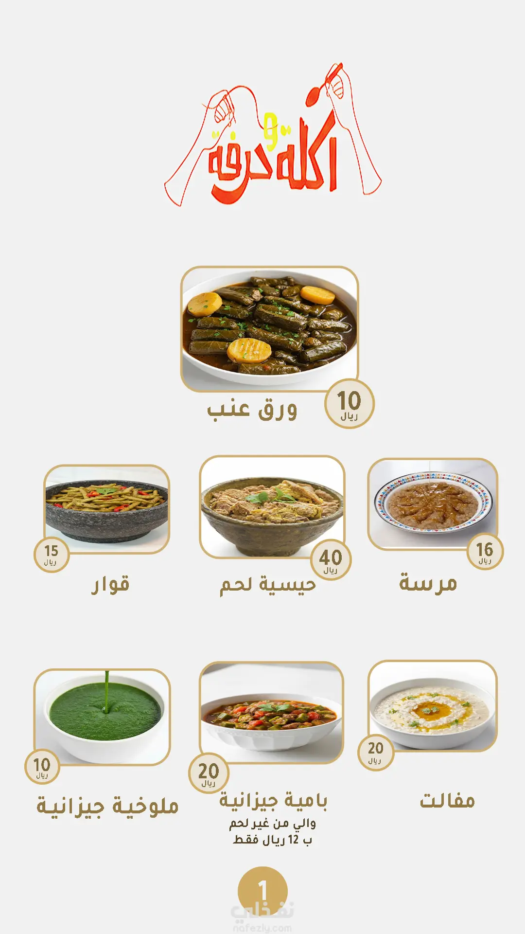 في هذا المشروع، قمت بتصميم قائمة طعام (Menu) لمطعم "أكلة وحرفة"، مع التركيز على دمج الأصالة الشعبية بالتنظيم العصري: