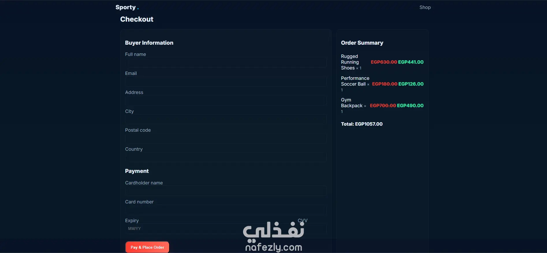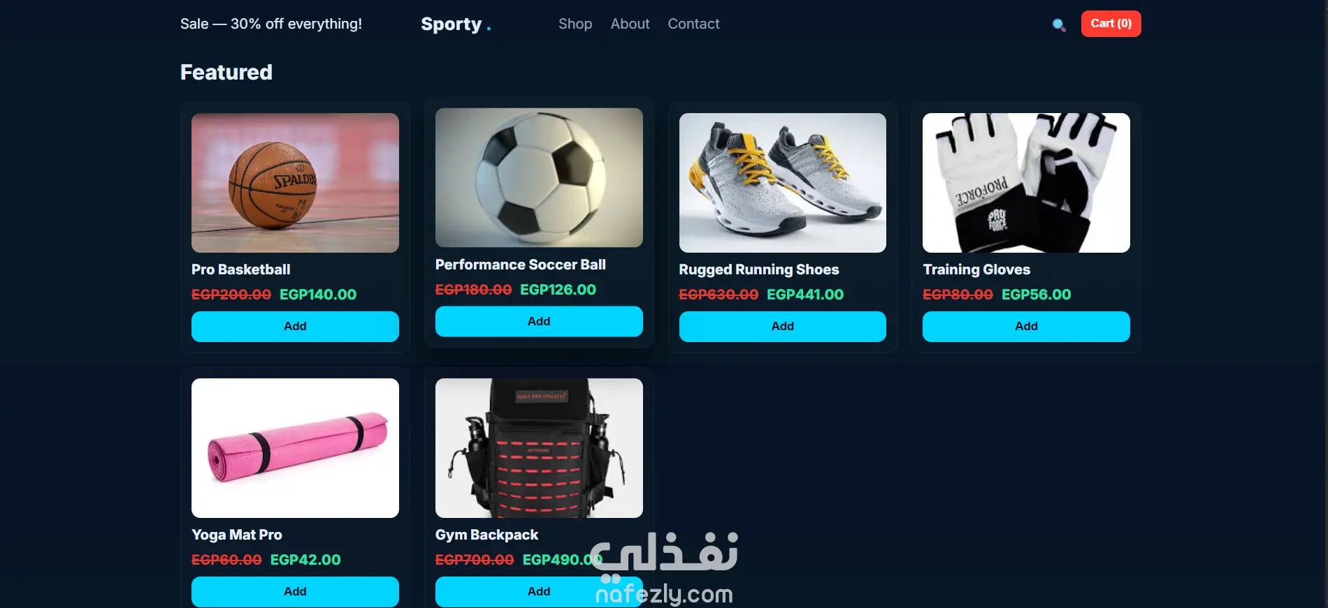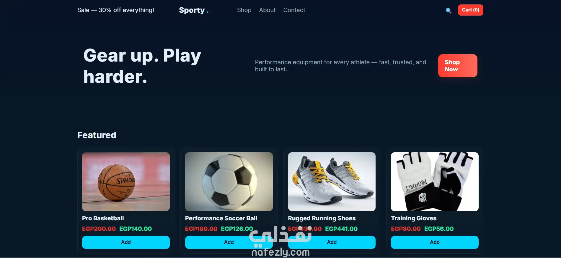 نموذج لمتجر إلكتروني عصري مخصص للمعدات الرياضية، يركز على تقديم تجربة مستخدم سلسة وتصميم جذاب.