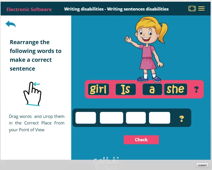 بصفتي مصممة تعليمية، أؤمن أن التعليم يجب أن يكون رحلة ممتعة وليس مجرد مادة جامدة، وهذا ما جسّدته في هذا المشروع الموجه للأطفال الذين يواجهون تحديات في مهارات الكتابة. قمت بتطوير لعبة تعليمية تفاعلية تعتمد على تقنية "السحب والإفلات" لتدريب المتعلمين الصغار على بناء الجمل الإنجليزية بأسلوب منطقي ينمي مهاراتهم اللغوية بطريقة غير مباشرة. حرصت في هذا العمل على دمج نظام تغذية راجعة فورية بلمسة فكاهية محببة للأطفال، حيث يتفاعل النظام مع إجاباتهم لتشجيعهم على الاستمرار، مع تزويدهم في النهاية بلوحة نتائج دقيقة تتيح لهم مراجعة أخطائهم والتعلم منها، مما يضمن تجربة تعليمية رقمية متكاملة تجمع بين الفائدة والمتعة