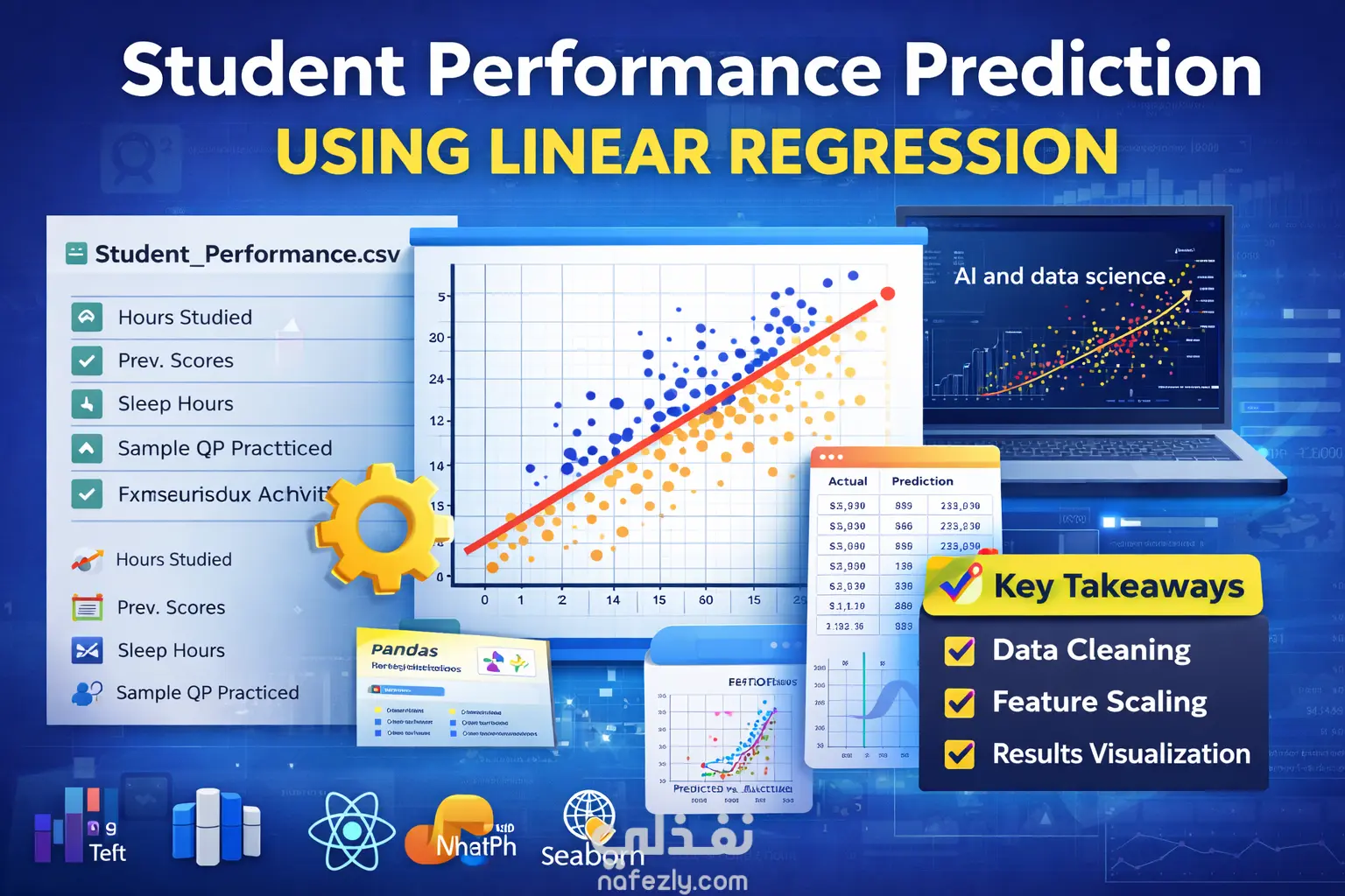 يركّز هذا المشروع على تحليل والتنبؤ بمؤشر أداء الطلاب باستخدام نموذج الانحدار الخطي (Linear Regression). ويتبع المشروع دورة عمل متكاملة لعلوم البيانات، تبدأ بتنظيف البيانات ومعالجتها المسبقة، ثم تدريب النموذج، وتقييمه، وأخيرًا عرض النتائج من خلال التصورات البيانية.