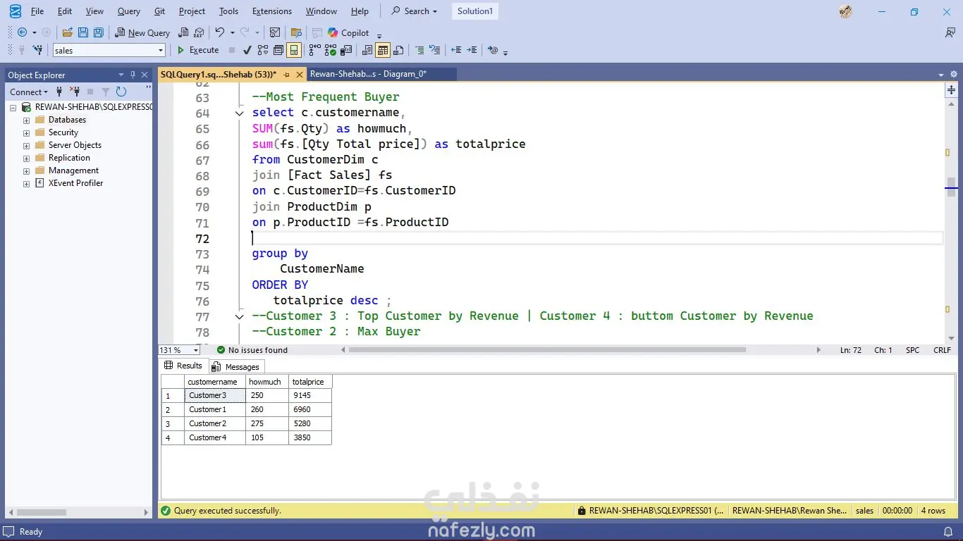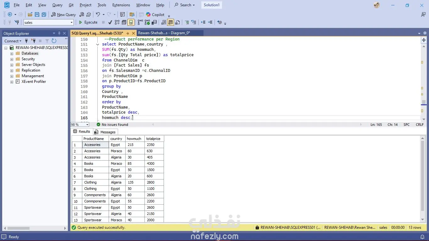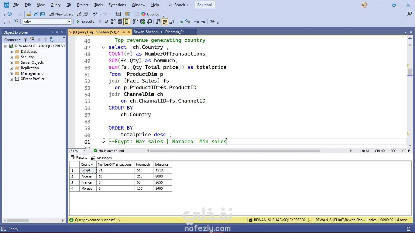 إليك ترجمة احترافية ومنظمة لمحتوى مشروعك: 📝 نظرة عامة على المشروع يركز هذا المشروع على تحليل بيانات المبيعات لاستخراج رؤى ومعلومات قيمة حول الإيرادات، وسلوك العملاء، وأداء المنتجات باستخدام Microsoft SQL Server. 🚀 المهارات وتقنيات SQL المستخدمة لغة تعريف البيانات (DDL): إنشاء الجداول وتحديد هياكل قواعد البيانات. لغة معالجة البيانات (DML): إدراج السجلات وتحديثها. الربط (Joins): دمج جداول متعددة للحصول على رؤية شاملة للمبيعات. التجميع (Aggregations): استخدام دالات SUM() و AVG() و COUNT() لإعداد التقارير. الاستعلامات الفرعية والتعبيرات الجدولية الشائعة (CTEs): لتصفية البيانات المعقدة. 📂 الملفات الموجودة في المستودع (Repository) sales_project.sql: يحتوي على الهيكل الكامل لقاعدة البيانات ونصوص البيانات (Scripts). 💡 أهم الرؤى والتوصيات التجارية تحسين الأرباح: تبين أن فئة الملابس الرياضية تحقق أعلى هوامش ربح رغم انخفاض حجم مبيعاتها. نوصي بعروض "اشترِ واحدًا واحصل على الآخر مجانًا" لزيادة حصتها في السوق. التوسع في السوق: تعتبر مصر السوق الأفضل أداءً (إيرادات بقيمة 12,000 دولار)، بينما أظهرت بيانات فرنسا فجوات واضحة. نقترح إجراء تحقيق مستهدف في سبب ضعف أداء السوق المغربي. ذكاء القوى العاملة في المبيعات: تم تحديد عمر كأكثر الموظفين تحقيقاً للإيرادات، وأحمد كـ "متخصص سوق" للمغرب. نقترح تنظيم ورش عمل للتدريب المتبادل بناءً على أساليب البيع الفريدة لكل منهما. الاحتفاظ بالعملاء: تطوير استراتيجية لمكافأة العملاء المخلصين بخصم 50% عند الإحالة (Referral)، وإعادة جذب العملاء غير النشطين عبر عروض الشحن المجاني. الاتجاهات الموسمية: لوحظ ذروة في الأداء خلال الربع الأول (Q1)، ونمو بنسبة 100% في مبيعات المكونات (Components) بين عامي 2007 و2008.