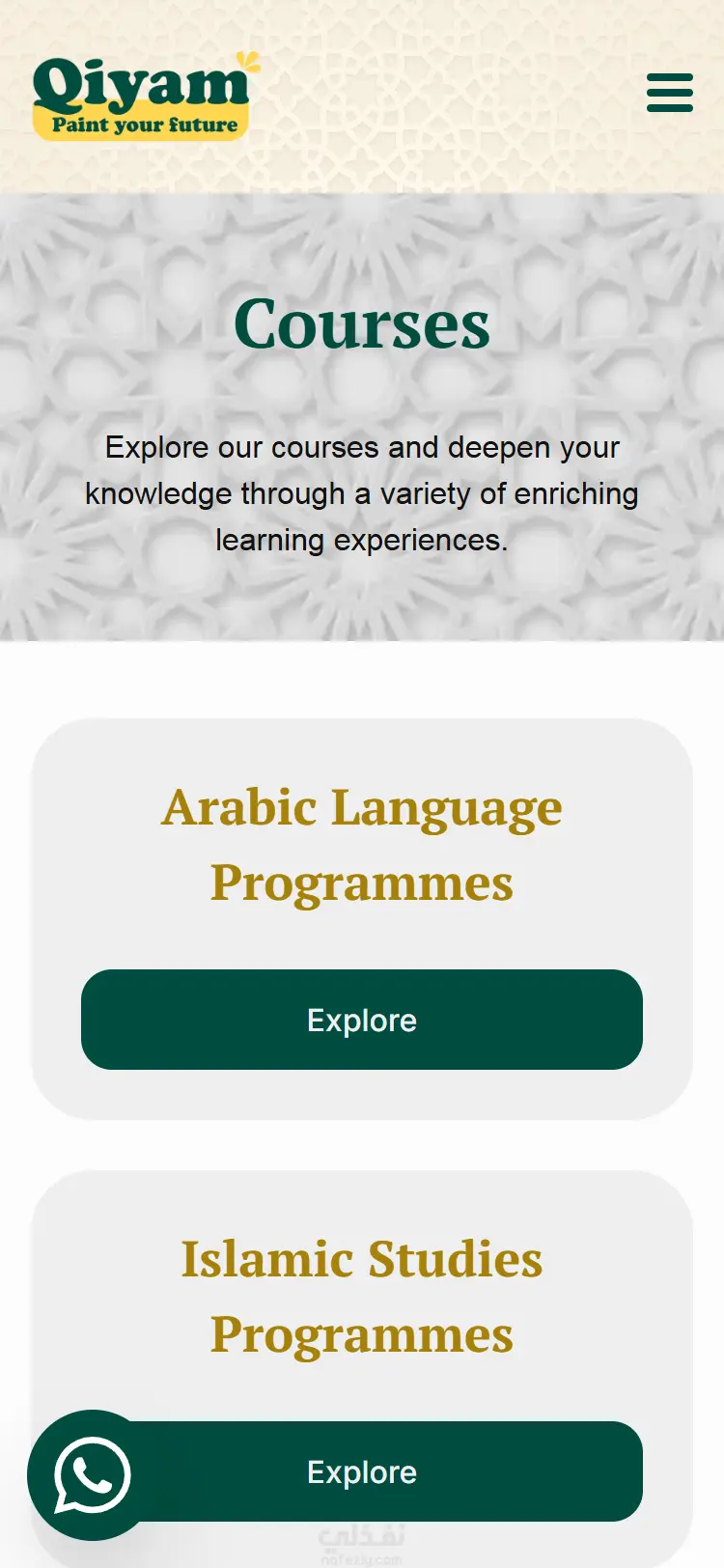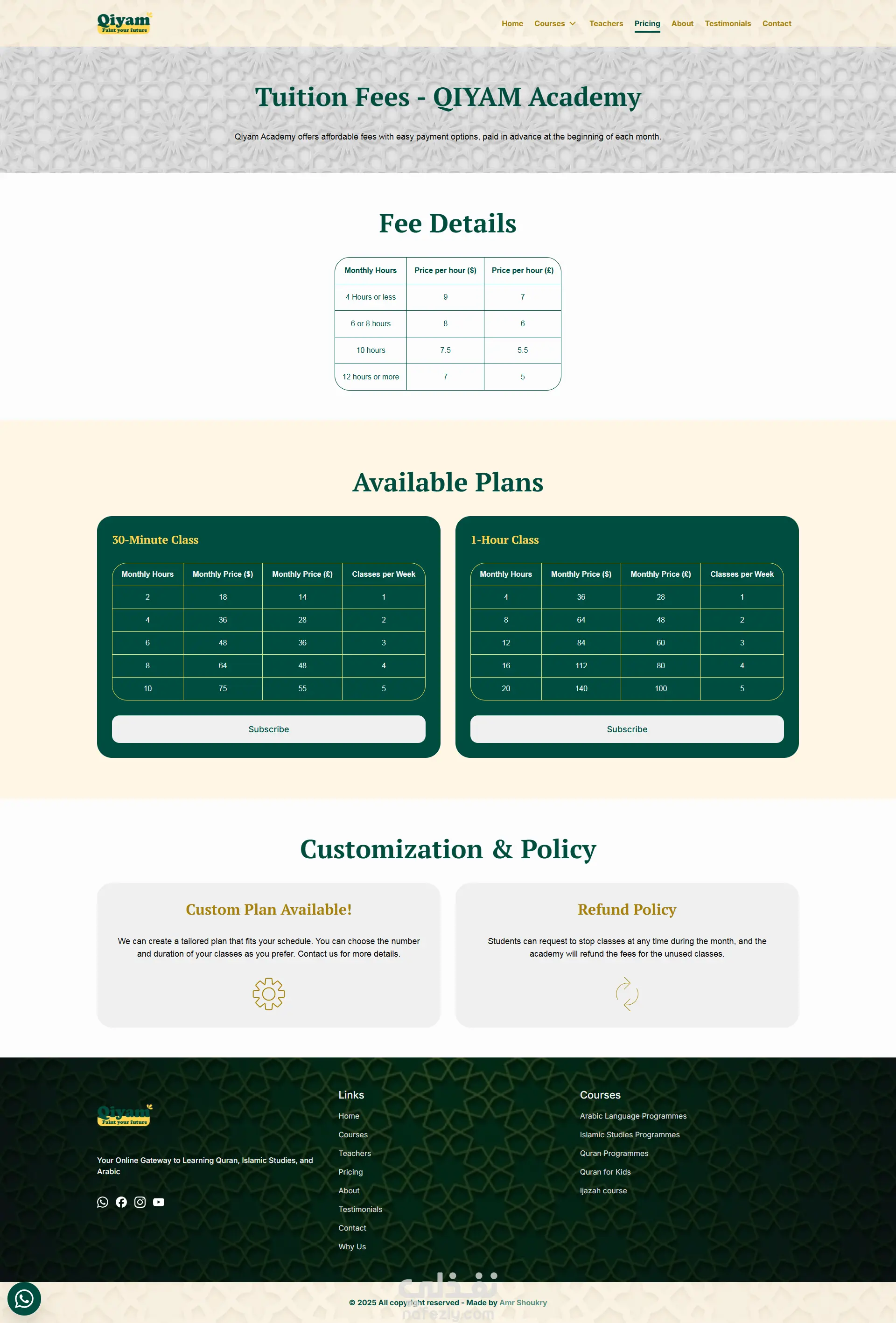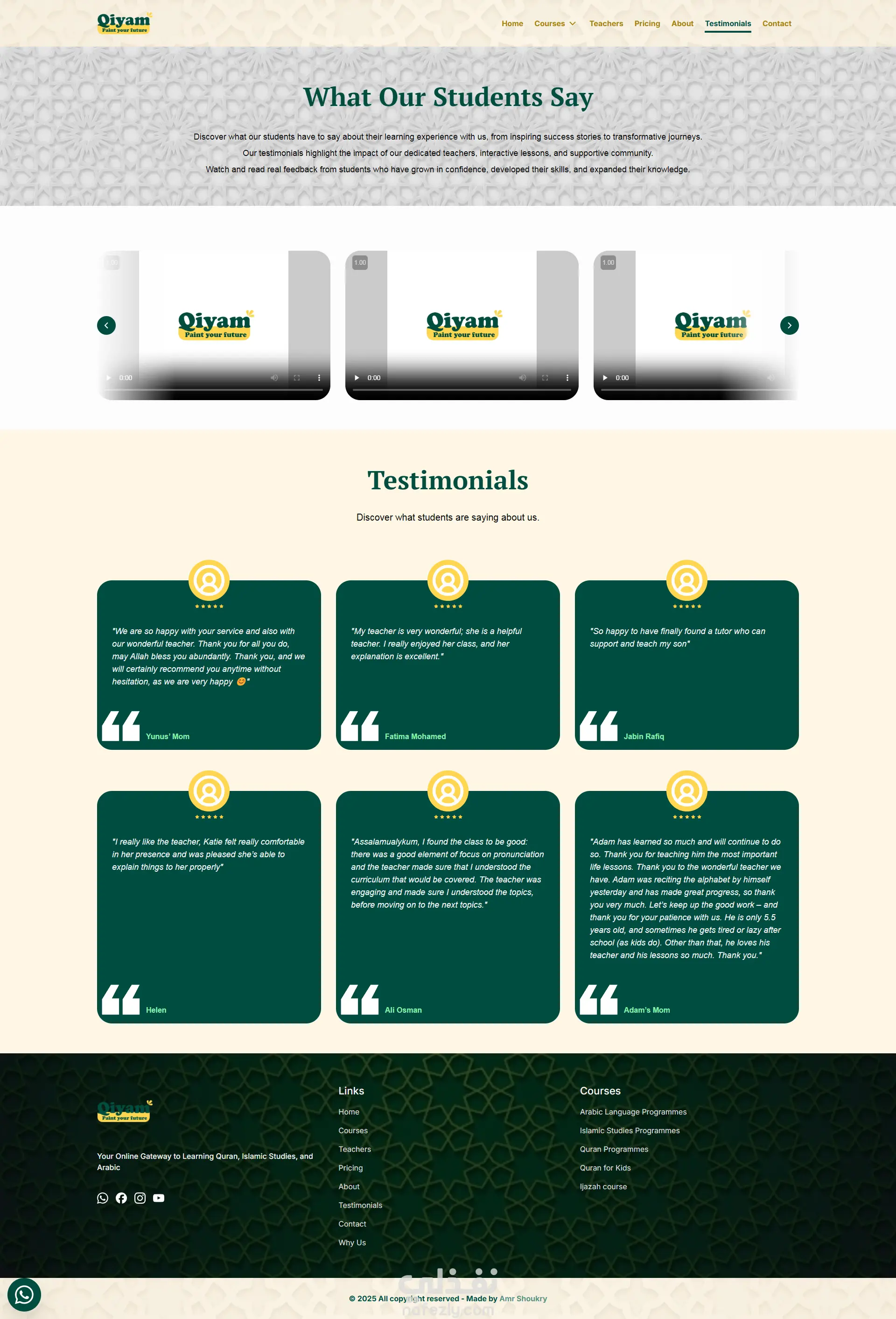 تطوير موقع Qiyam Academy