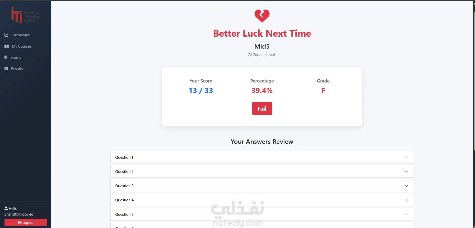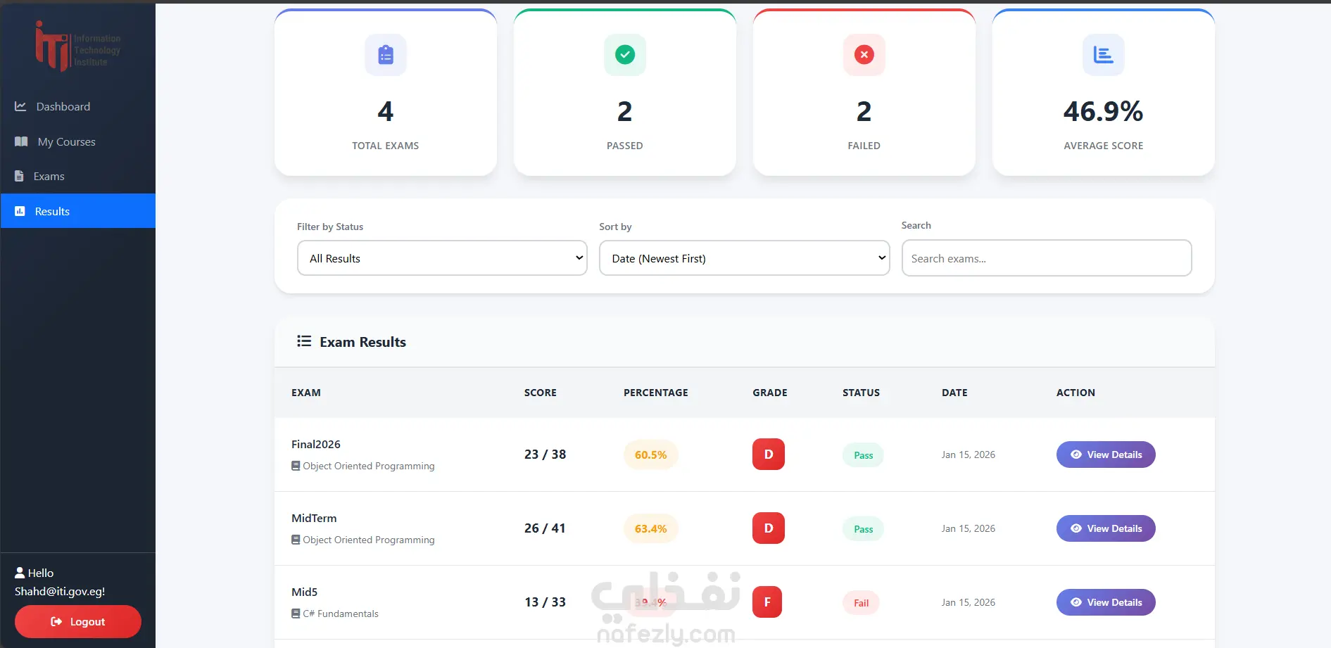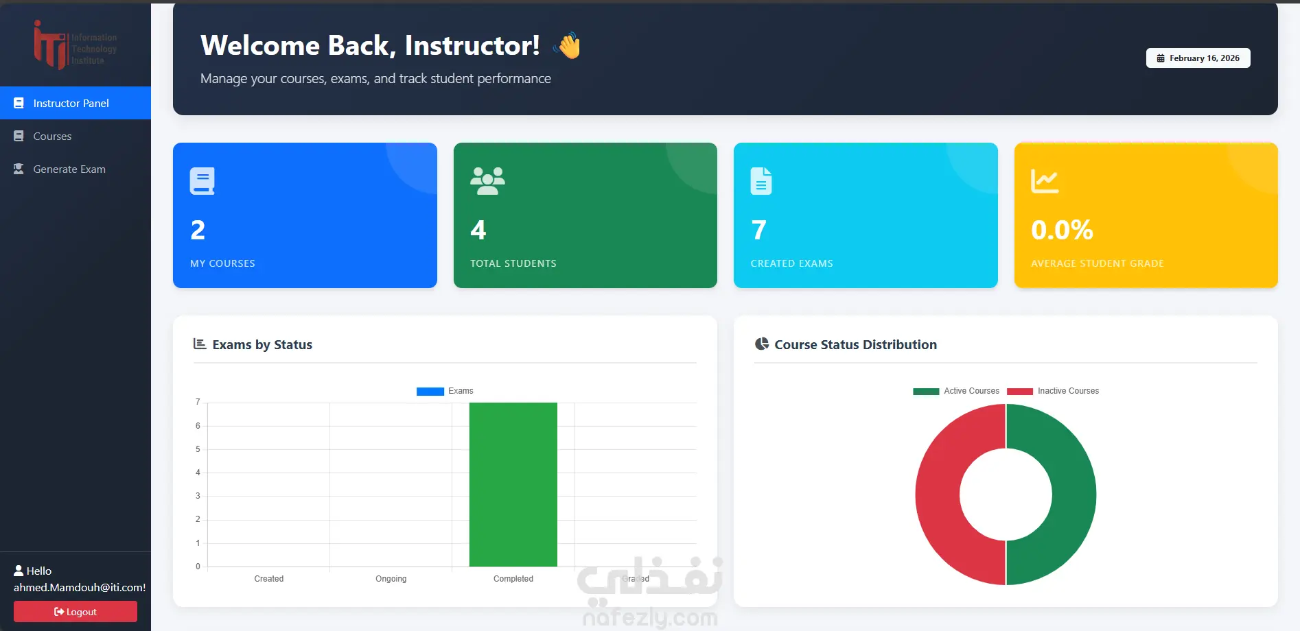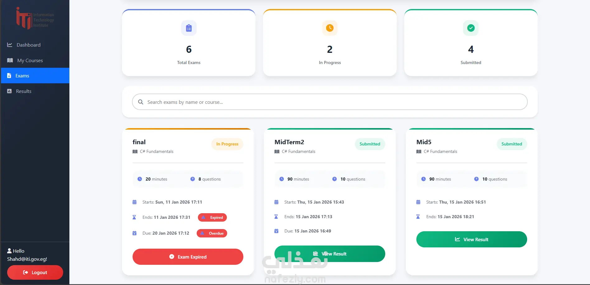 هذا المشروع تم تطويره كجزء من امتحانات ITI، وهو جاهز الآن ليتم استخدامه أو تطويره لأي مؤسسة تعليمية أو منصة تدريبية.