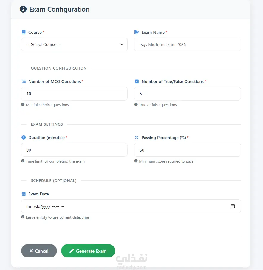 تطبيق ويب متكامل يدعم جميع الوظائف الأساسية لإدارة الامتحانات.