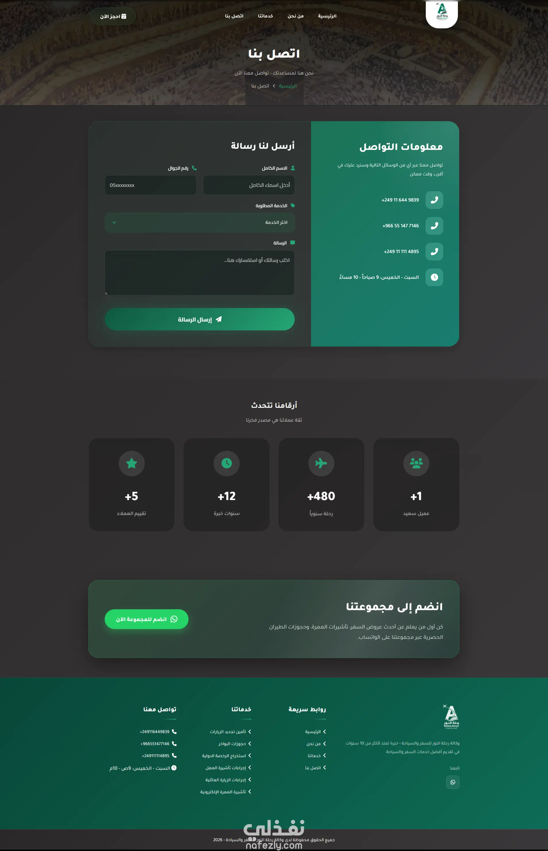 موقع الكتروني لوكالة سفر وسياحة من خلال الموقع تتم عمليات طلب للخدمات الخاصة بالسفر والسياحة التقنيات المستخدمة html - css - js - php -mysql