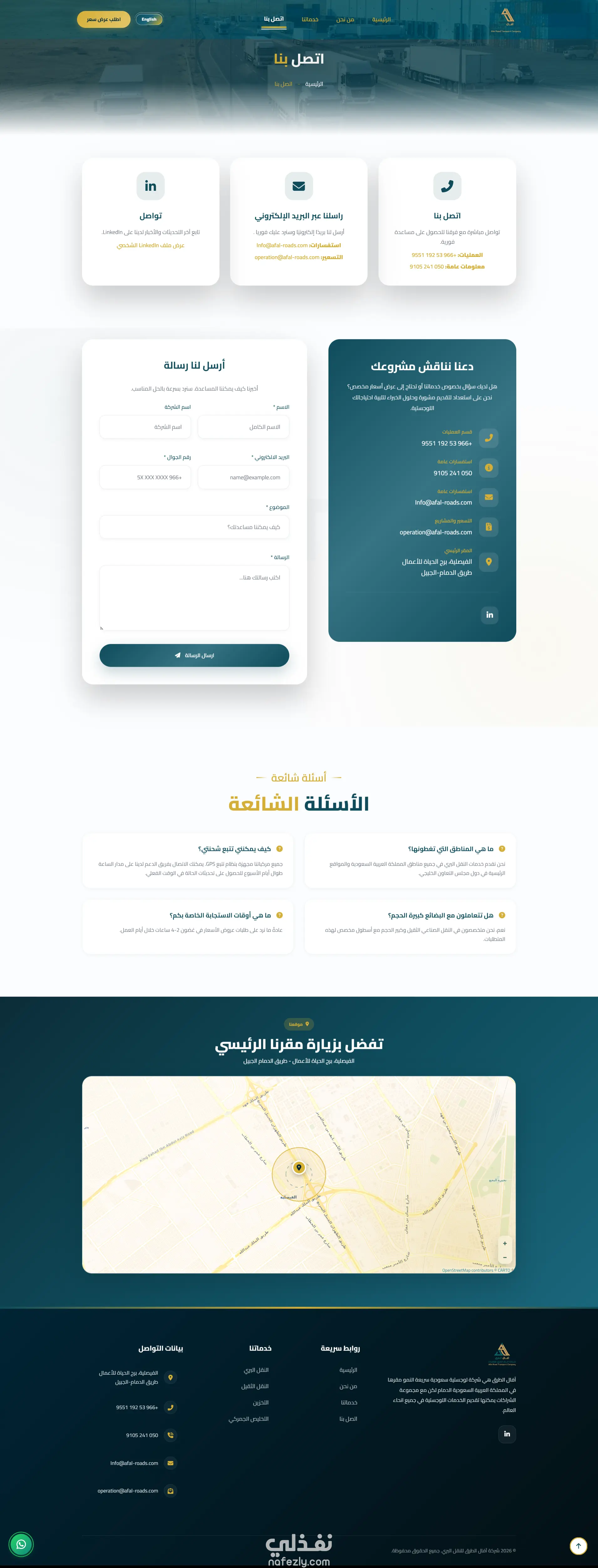 موقع الكتروني لشركة نقل بري سعودية التقنيات المستخدمة : html - css - js - ajax - jquery - jason - php - mysql