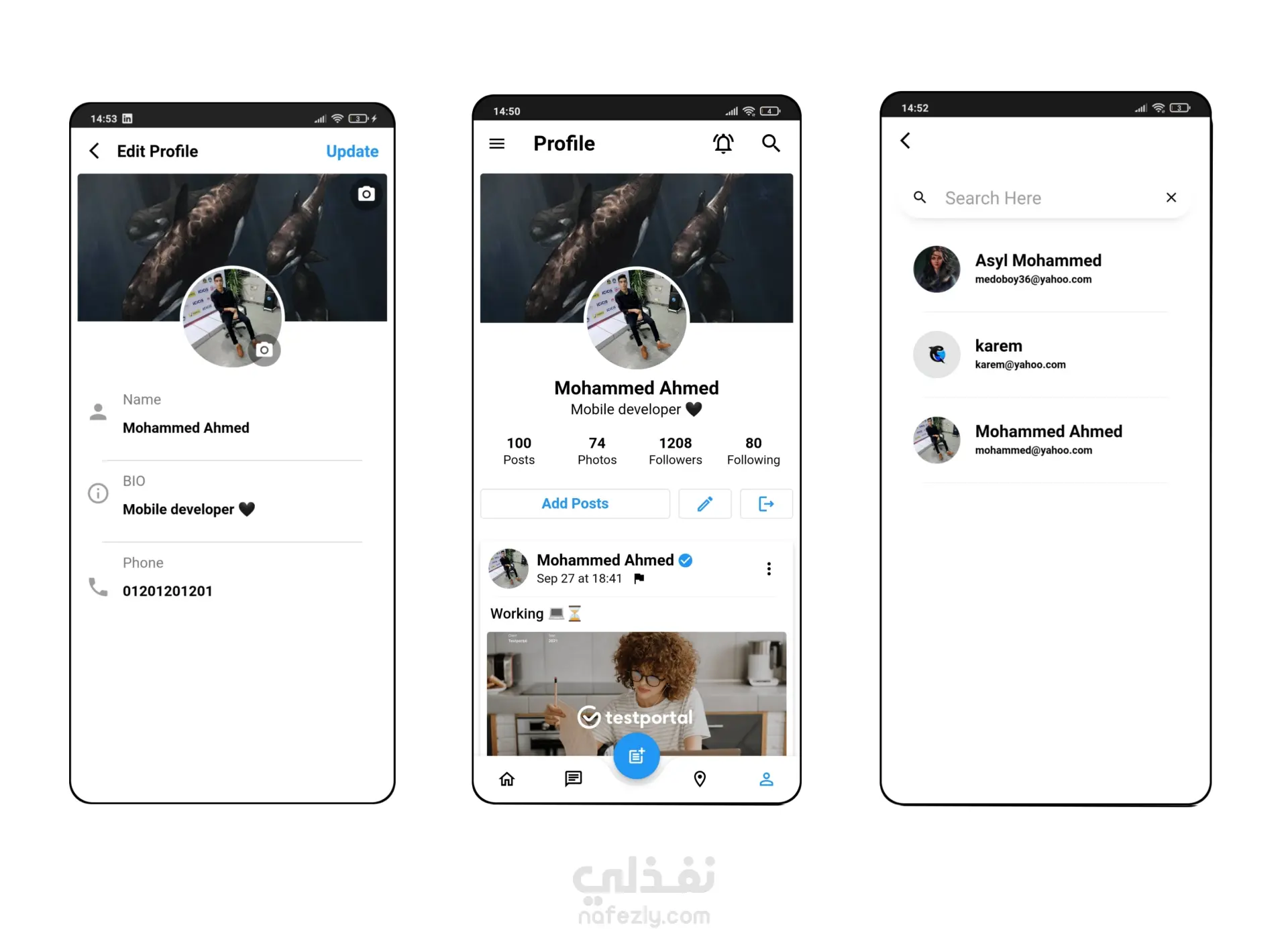 اللغات والأدوات المستخدمة: Dart، Flutter، Firebase، Bloc State Management تطبيق موبايل مصمم لتقديم خدمة تواصل اجتماعي تتيح للمستخدمين نشر المحتوى والتفاعل مع بعضهم البعض بسهولة وسلاسة. يتيح التطبيق للمستخدمين المسجلين: نشر المنشورات (Posts). الإعجاب بالمنشورات (Like). إجراء محادثات فورية (Chatting). يعتمد التطبيق على Firebase لإدارة قاعدة البيانات والمصادقة وتخزين البيانات بشكل آمن، مع استخدام Bloc لإدارة الحالة بشكل منظم واحترافي، مما يضمن أداءً سلسًا وتجربة استخدام مميزة.