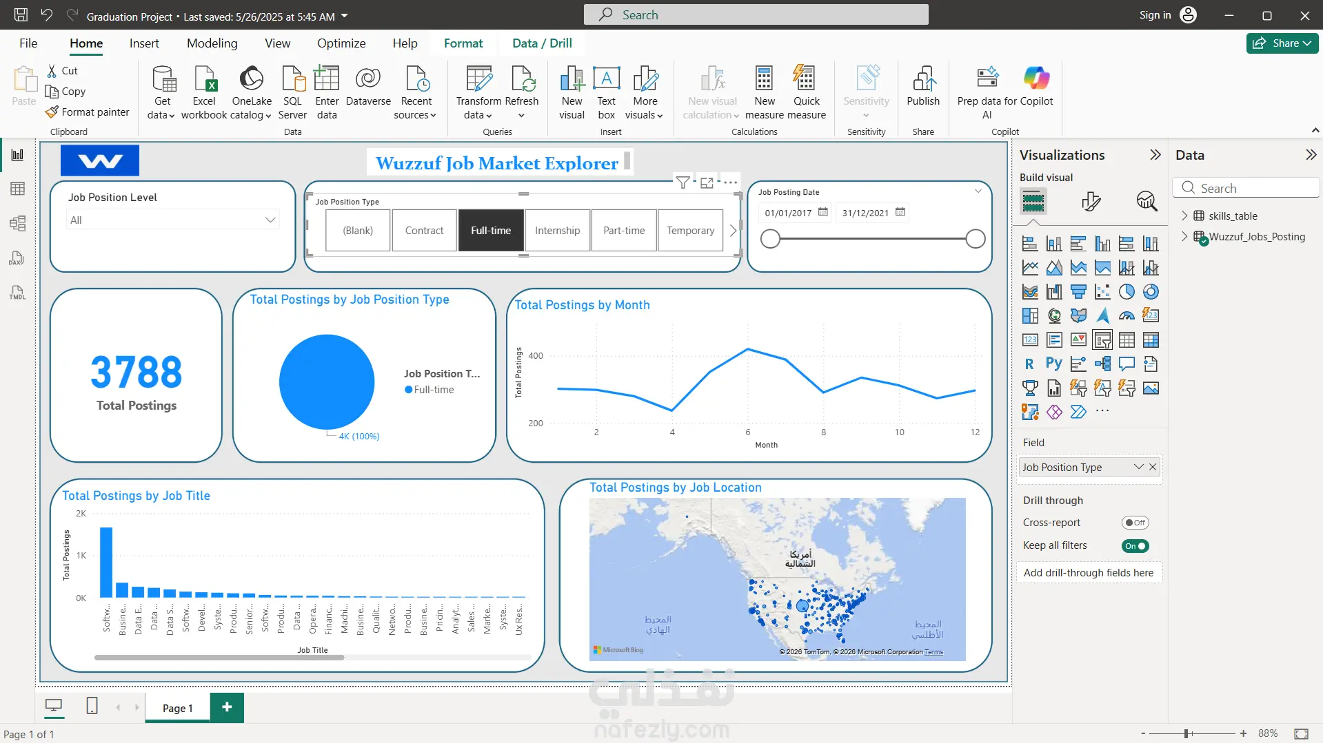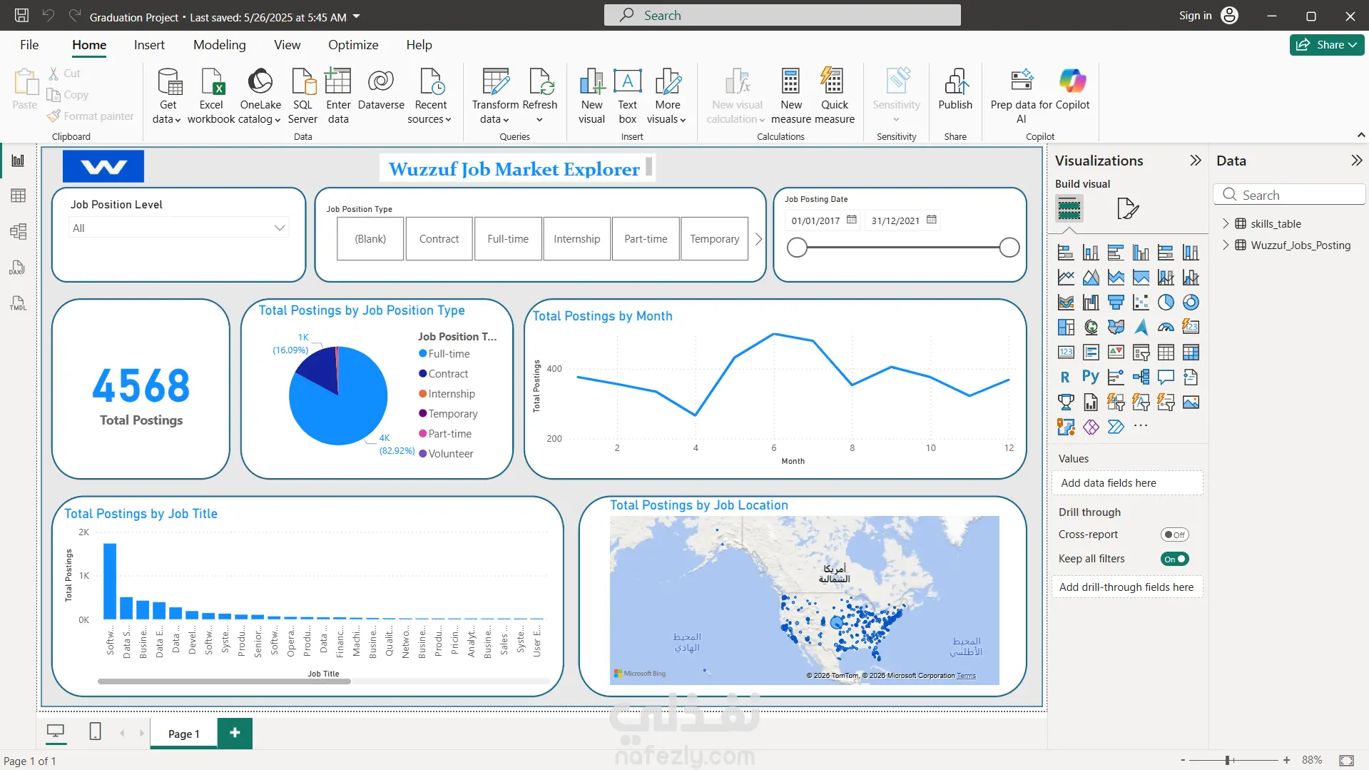 Wuzzuf Job Market Explorer: بوصلتك لسوق العمل المصري بدلاً من الغرق في آلاف الإعلانات، قمت بتحويل 4,568 وظيفة من موقع "Wuzzuf" إلى خريطة طريق ذكية تكشف أسرار التوظيف في مصر. ماذا فعلت؟ تصفية احترافية: استخدمت Excel لغربلة البيانات الخام وتحويلها إلى أرقام ذات قيمة. رؤية بصرية: عبر Power BI، صممت لوحة بيانات (Dashboard) تفاعلية تجيب على أهم الأسئلة: ما هي الوظائف الأكثر طلباً؟ وأين تجدها؟ وهل العمل من المكتب أم "من على الأريكة"؟ النتيجة؟ مشروع لا يعرض بيانات فحسب، بل يمنحك "رؤية الصقر" لمتطلبات السوق والمهارات التي يبحث عنها أصحاب العمل فعلياً.