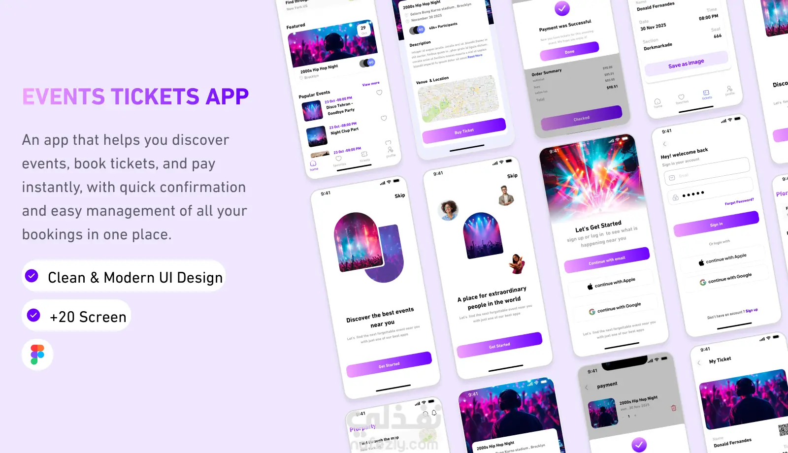 تم تصميم تطبيق حجز التذاكر بهدف تسهيل عملية اكتشاف الفعاليات وشراء التذاكر بطريقة سريعة وسلسه بدأت عملية التصميم بفهم المشكلة وتحديد أهداف التطبيق ثم إجراء بحث تجربة المستخدم لتحليل احتياجات المستخدمين والمشكلات التي يواجهونها، مثل صعوبة العثور على الفعاليات وتعقيد خطوات الحجز وبناءً على نتائج البحث تم تحليل البيانات وإنشاء شخصيات المستخدم وتحديد نقاط الألم ثم تصميم هيكلة المحتوى وتدفقات المستخدم لضمان رحلة استخدام واضحة ومنطقية بعد ذلك تم إنشاء النماذج الأولية منخفضة الدقة لاختبار تخطيط الشاشات قبل تنفيذ التصميم النهائي في المرحلة الأخيرة تم تطوير واجهات المستخدم عالية الدقة مع بناء نظام تصميم متكامل يشمل الألوان والخطوط والأيقونات والمكونات مما حقق الاتساق البصري وسهولة الاستخدام وساعد على حل مشكلة تعقيد وطول عملية حجز التذاكر وتقديم تجربة مستخدم فعّالة ومريحة